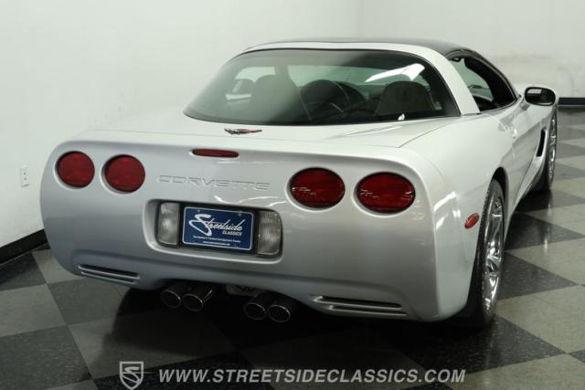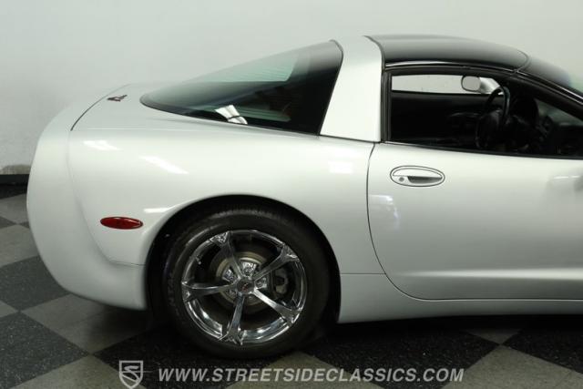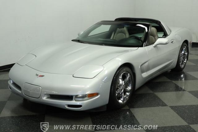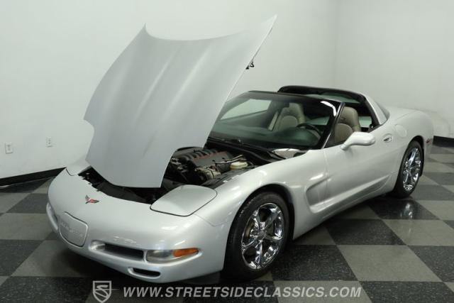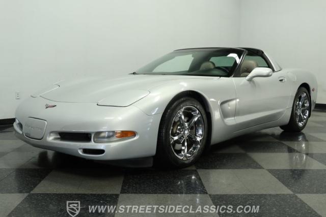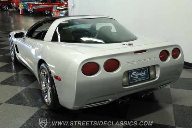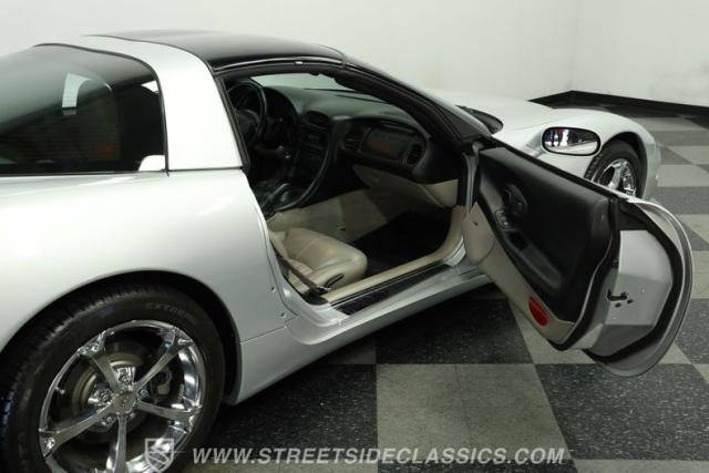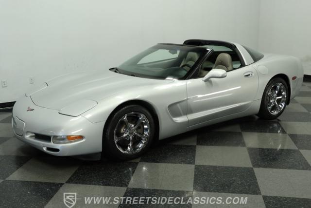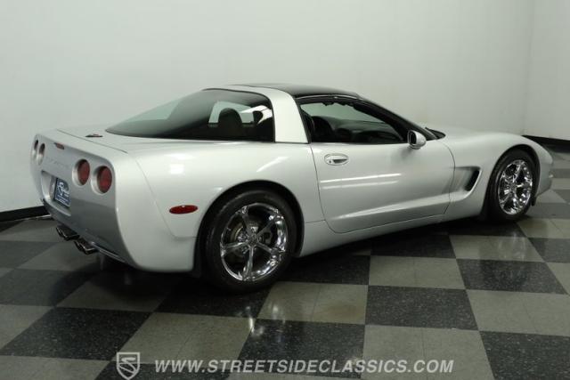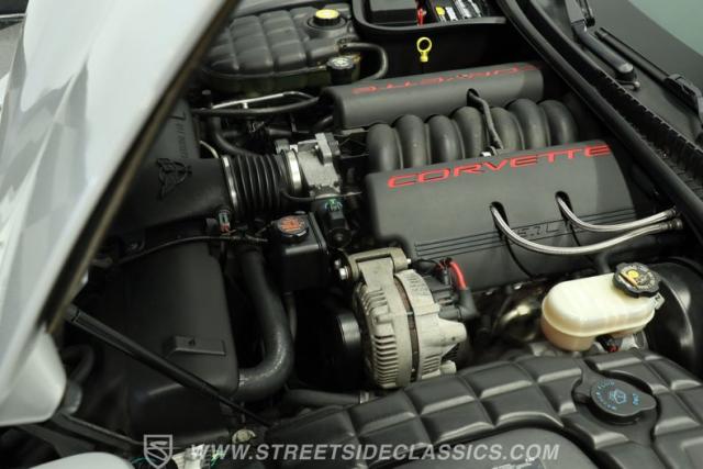 Underneath its polished exterior lies the heart of this machine: a legendary 5.7L LS1 V8 engine paired with a smooth 4-speed automatic transmission. The well-tuned factory suspension promises razor-sharp handling. Effortless power flows to the rear wheels, providing the perfect balance of acceleration and cruising comfort. The dual exhaust hints at the Corvette\'s potent performance while maintaining an air of sophistication.