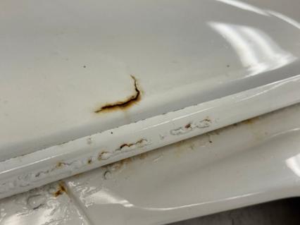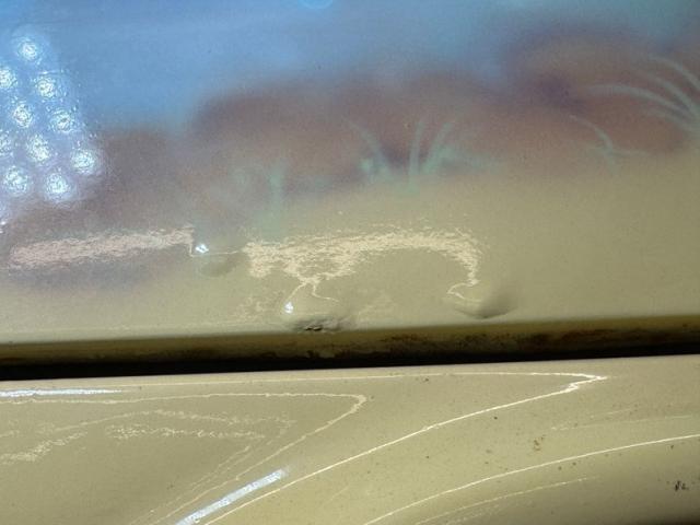Plenty of surface rust exists on this driver quality underside, along with a coating of oil on the transmission. The dual exhaust and stock style muffler are tinged by surface rust but intact while we note some flaking rust on a frame rails and where the battery box once was. There are a few spots where grease has accumulated, but the knuckles are in decent condition. Suspension includes a front torsion arms and a transverse torsion bar in back.
