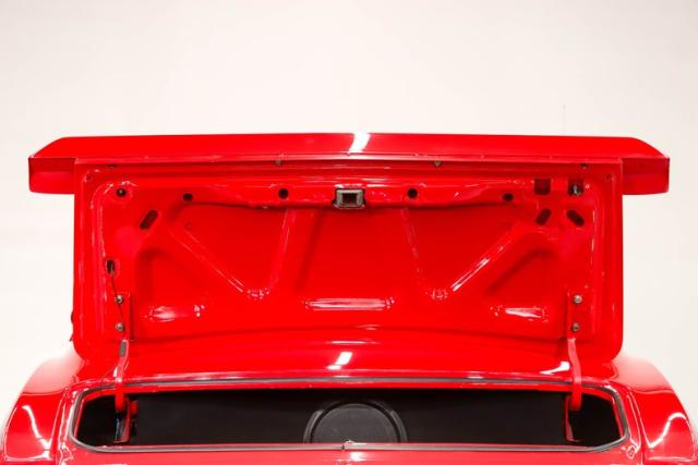 TRUNK COMPARTMENT: Under the trunk lid and the jamb is painted slick, it has a trunk light and the weatherstrip was replaced. Inside is completely boxed and carpeted and features a subwoofer.