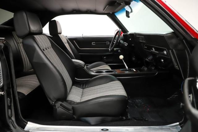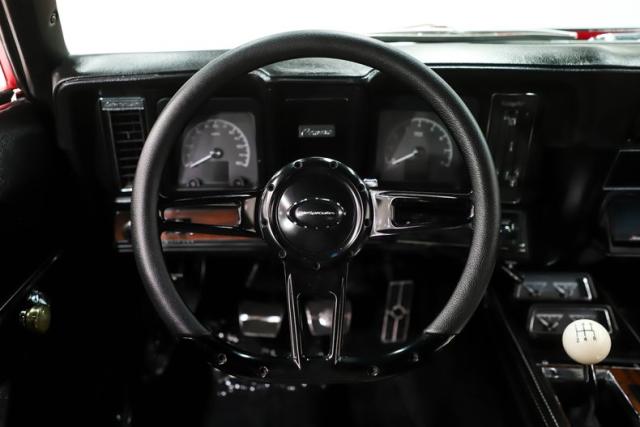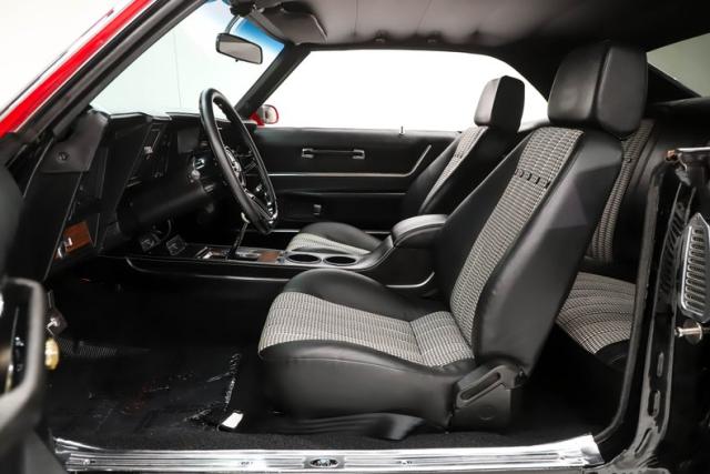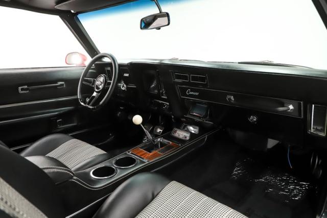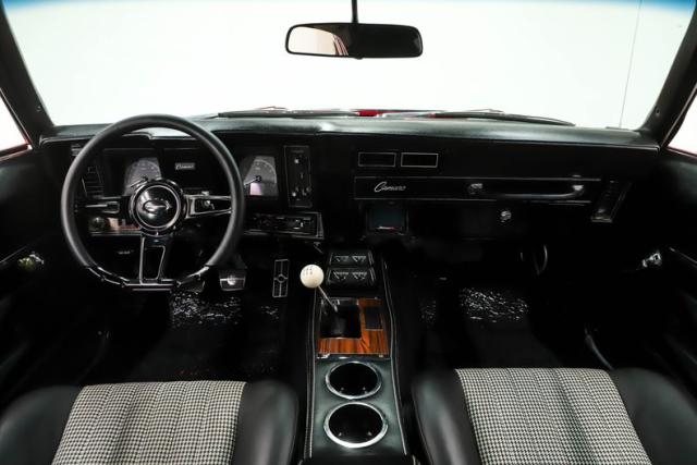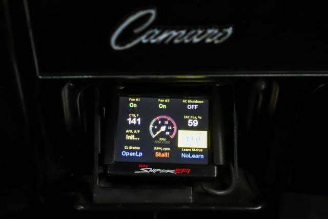 EXTERIOR: This Camaro has a look that makes it stand out from all the others. The body is slick, straight and dressed up with some nice features like the fiberglass hood, spoilers, and sport mirrors. It also has the very desirable Rally Sport package which includes hideaway headlights and relocated reverse lights. The light doors have been upgraded with electric motors. This one even comes with the Enduro rubber bumper painted gloss black. The two-tone red and black paint is striking, it\'s broken up by a silver pinstripe. It\'s polished very smooth and glossy. The tinted glass really compliments this car too. It has nice looking billet bezels around the taillights. It\'s sitting proud on a set of 19 inch Boze wheels wrapped in Nitto performance tires.