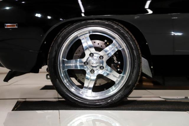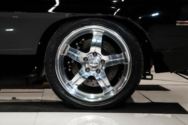 UNDERSIDE: It has a Speedtech performance Pro Touring Track Time suspension package front to back. It\'s the ultimate upgrade including a custom subframe, tubular control arms, custom swaybar, QA1 adjustable coilover shocks, and rack and pinion steering. In back is a torque arm suspension with tubular trailing arms, upper rear crossmember, front torque arm crossmember, and QA1 adjustable coilovers. The front and back are tied together with frame connectors. It has a custom welded, stainless 3 inch exhaust with polished mufflers that goes all the way out the back. It also has a custom fuel system. The Wilwood disc brake system has drilled and slotted disc at all four wheels, 6 piston calipers in front and a custom e-brake assembly. Looking up at the motor it\'s all fresh and has a high torque starter and heavy-duty bell housing. The Tremec 5-speed trans connects to a custom driveshaft that leads back to a Dutchman 9 inch posi rear end.