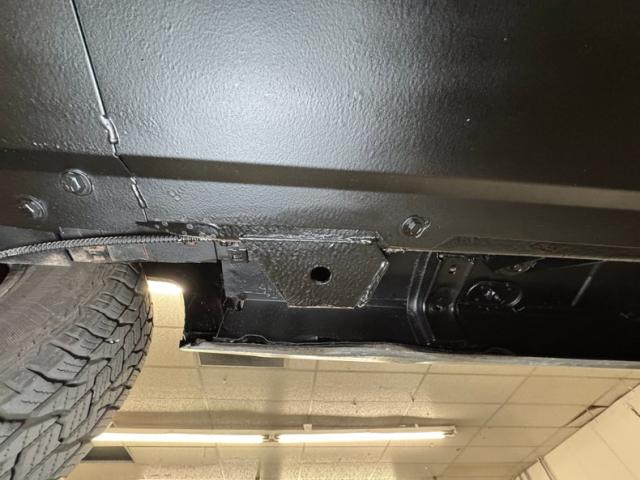 We lift the hood to find a rather tattered insulator over a driver quality 360ci V8 with a 2-barrel carburetor and a horsepower rating of 144. It\'s backed by an A727 Torqueflite 3-speed automatic transmission, manipulated via a column shifter, and sending power to Dana 44 axles at both ends with 2.73 gears.