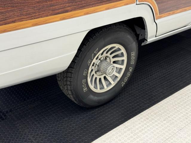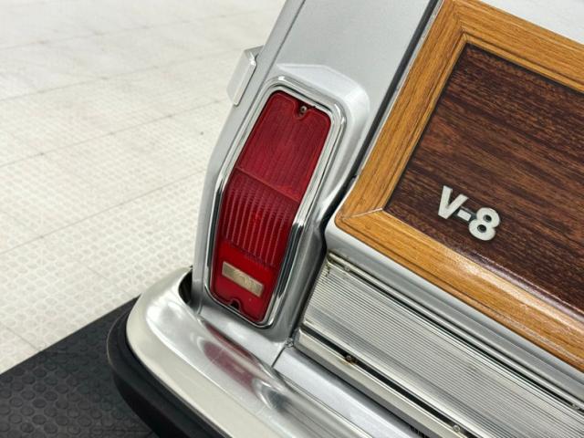 The boxy shape, wide track stance, the iconic woodgrain panels. What\'s not to love on this example in Silver? Single headlights front a handsome fascia with a raised detail on the hood and this one sporting fog lights on the bumper in front of a purely horizontal grille. It also has a roof rack and rear spoiler along with tinted glass all the way around. The standard 15-inch cast aluminum wheels carry 235/75R15\'s with an early 2019 date code and letters out in lieu of the white line tires shown in the sales catalog. The wood grain applique is frames in plastic rails depicting a lighter wood for a classic contrast that is ultimately desirable right now. Paint and trim are generally nice with imperfections noted as some cracking and uneven filler on the rocker panel, bubbling on other areas, chin scuffs, bubbling clear over woodgrain, and clearcoat oxidation on the wheels.