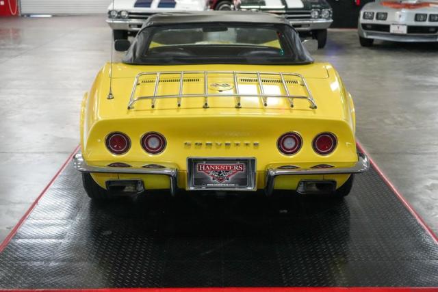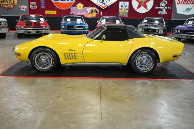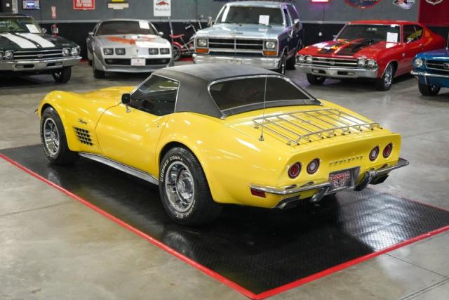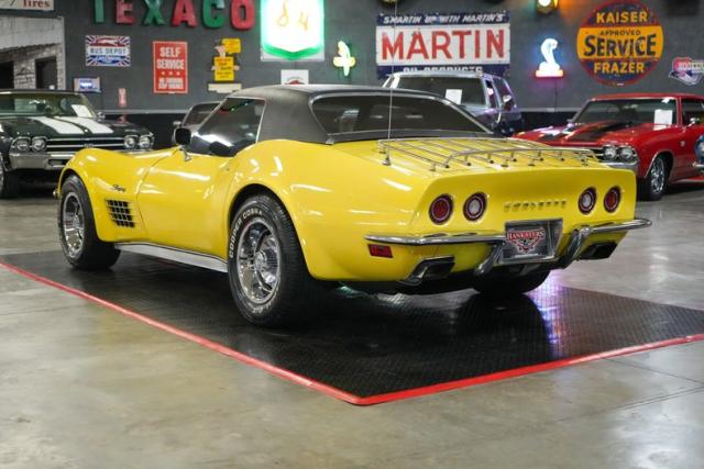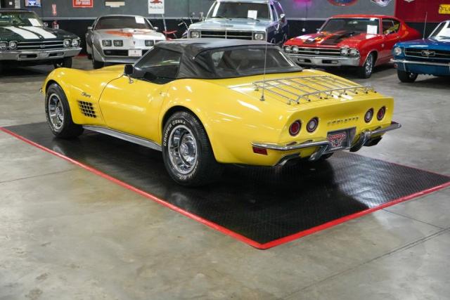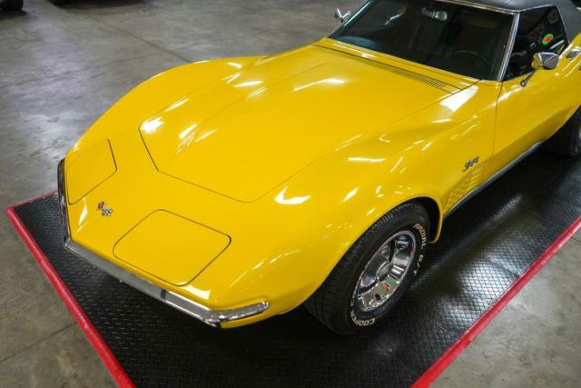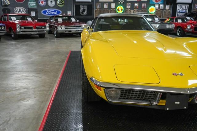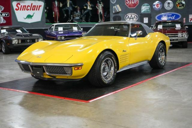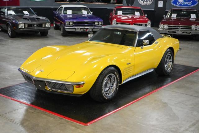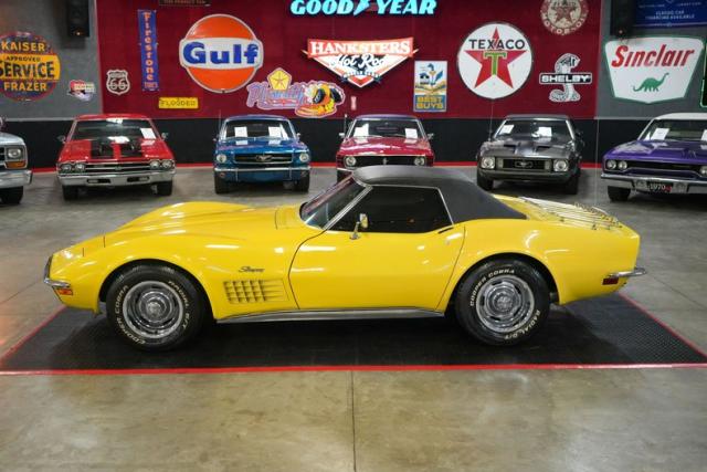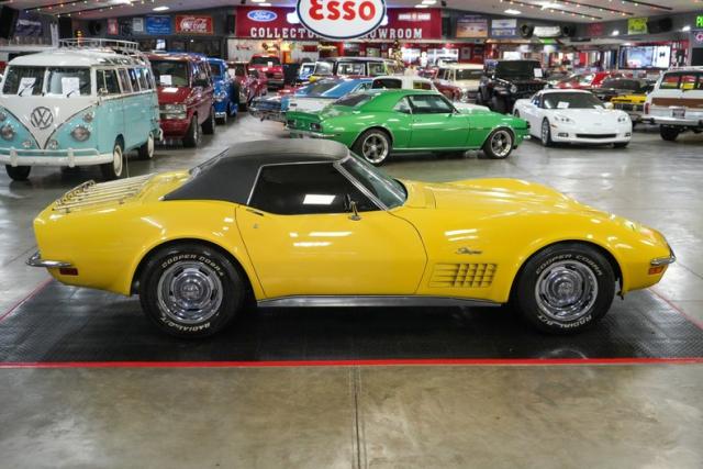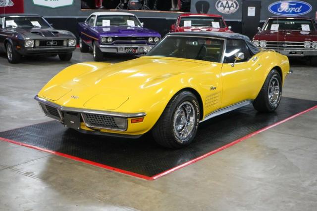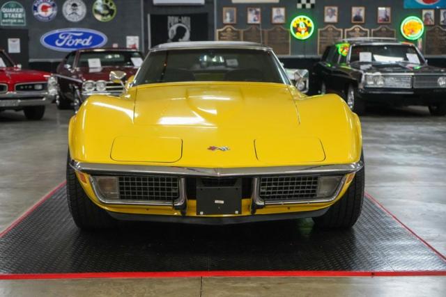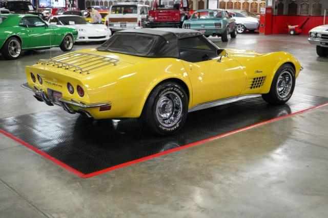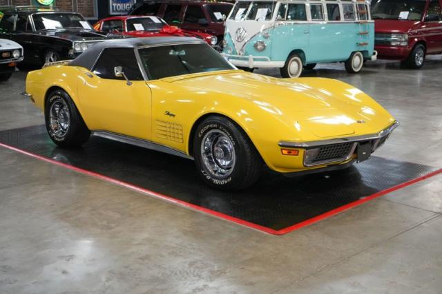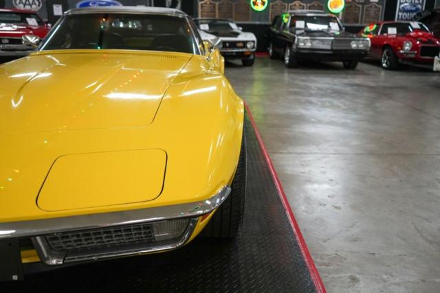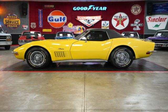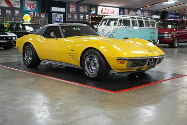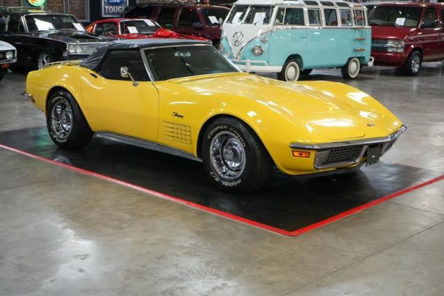 This 1970 Chevrolet Corvette combines classic C3 styling with factory-correct performance. Powered by its numbers matching 350ci Small Block Chevy V8 and backed by a GM TH400 automatic transmission, this Stingray features a POSI IRS rear end with 3.08 gears. The Holley 600 CFM 4-barrel carb feeds the original intake, while cooling is handled by an aluminum radiator and clutch-style fan. Finished in striking Yellow paint, it sports a black vinyl convertible top and removable hardtop. Additional features include air conditioning, power steering, power brakes, power windows, black leather interior, and 15\" Rally wheels wrapped in Cooper Cobra tires. THIS VEHICLE QUALIFIES FOR FREE SHIPPING AND A WARRANTY!!