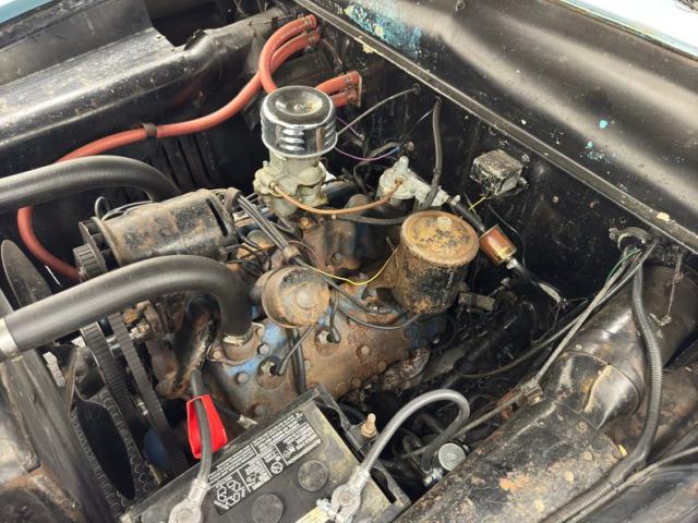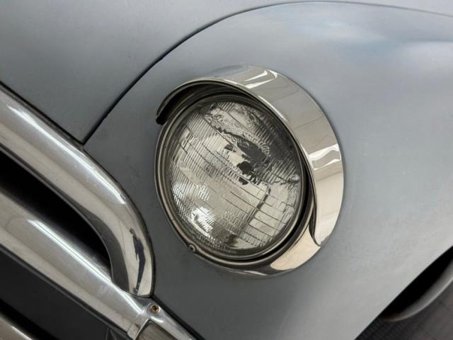 In the center of an unrestored engine bay sits a blue painted engine block and intake manifold topped by a chrome louvered air cleaner. All hoses are shiny and nearly new, and our consignor stated that the electrics have been converted to 12 volt, however we note the battery appears to still be a 6 volt unit. Worth mentioning, it is a 239ci Flathead V8 topped with a 2bbl carburetor, and it is backed by a 3-speed manual transmission. This combination sends power back to a 3.73 geared rear axle.