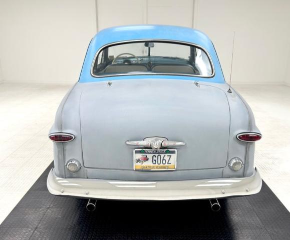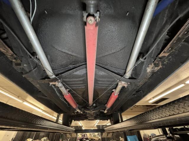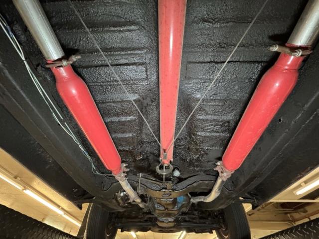 Not only ushering in the pontoon body style, the undercarriage was innovative as well in that a modern ladder frame now supports a coil spring independent suspension in front and longitudinal semi elliptical springs in back. The engine was moved forward to make more room in the passenger compartment and the antiquated \"torque tube\" was replaced by a modern driveshaft. All this shows in an unrestored invasive rust free environment with only minor patina and undercoating. A dual exhaust system with Cherrybomb mufflers handles the exhale from the flathead and appears as nearly new. Drum brakes are on all 4 corners to provide the stopping power, and now it\'s off to the races...er...um...test track.