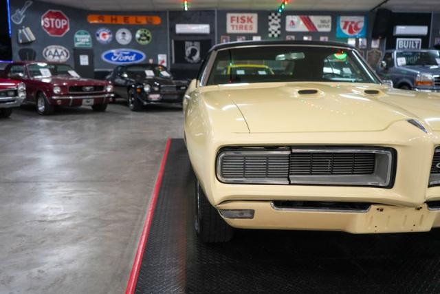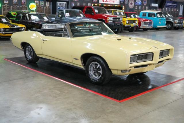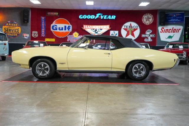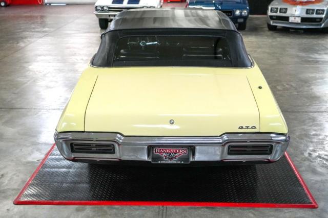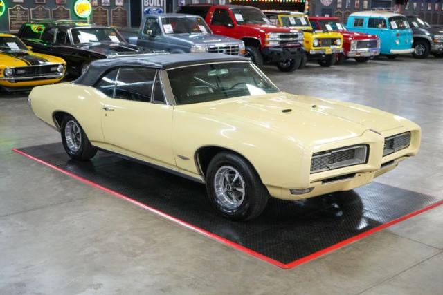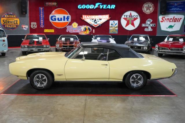 This 1968 Pontiac GTO Convertible is a classic muscle car with open-air appeal, powered by a strong 400 V8 paired with a TH400 automatic transmission and a 3.36-geared rear end. Finished in eye-catching yellow with a black canvas convertible top, it features a black vinyl interior for a timeless look. Equipped with power steering, power brakes, and front disc brakes, it offers a comfortable and confident driving experience. Riding on Pontiac Rally II wheels with Hankook tires, it retains its factory character with a Rochester Quadrajet carburetor and OEM-style components, making it a true cruiser from the golden era of muscle cars. THIS VEHICLE QUALIFIES FOR FREE SHIPPING AND A WARRANTY!!