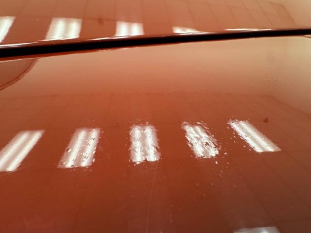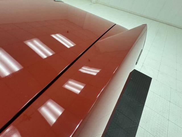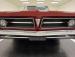 We\'re greeted with very clean and attractive door panels in pleated red grain vinyl, polished trim, and carpeted lowers. Low backed bucket seats occupy the front and a bench in the back, all in beautify red grain vinyl in a ribbed stitch pattern in just about flawless condition. Our eyes are drawn to the busy dashboard fronted by a plastic steering that includes clear acrylic and red plastic along with a touch of woodgrain that\'s repeated on the mid dash panel. Chrome surrounds the horizontal speedometer, rounded gauges, and the Pontiac tachometer while a Pontiac branded and updated AM/FM/Cassette with CD player is in place. The passenger gets a grab handle over the shelf like glove box and the center console holds a vacuum gauge and the Hurst shifter, all over red carpet, black mats with a stamped arrowhead, and below a white perforated headliner that has a tear or two. A brown vinyl mat covers the trunk floor completely and there is some typical surface rust on the metal below it.
