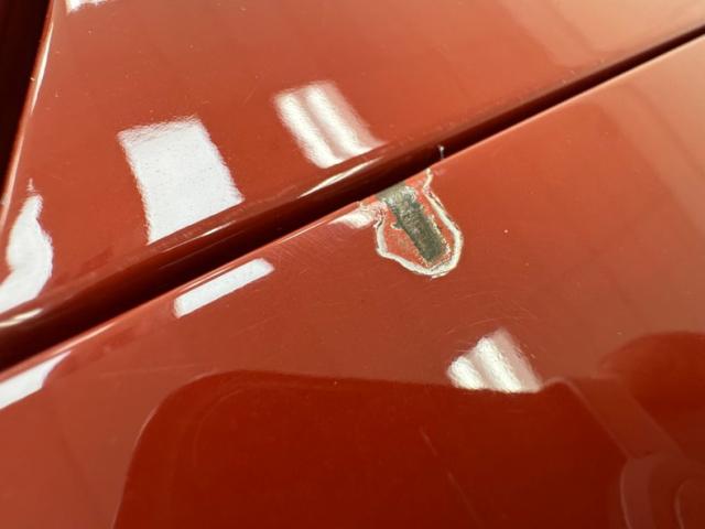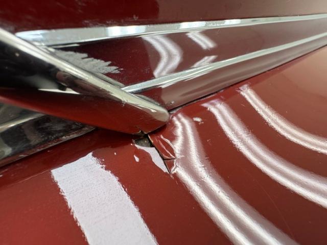 A print ad exclaimed, \"the car the other \'63\'s wish they looked like\" and there\'s no denying the immediate recognizability of the Pontiac, its sleek but boxy proportions and of course, the set up they called over and under headlights bookended a now iconic grille. Our example presents in Grenadier Red, the color it was born with, and the body includes some notable accenting including the Tri-Power emblem, painted Indian head profiles on the fenders, a gold beltline pinstripe, and a singular, fender mounted side mirror. But let\'s turn our attention to the glory that is the rear view with fender edges that hint at fins and between them, a ribbed detail that takes in the tail lights at the end. The 14-inch eight lug wheels do look robust and carry 225/75R15 tires all around. Imperfections on the outside include a big chip on a front fender, other random chips especially on panel edges, substantial inclusions and bubbling throughout, cracking paint, rust on rear fender, and scuffs in the chrome bumper.