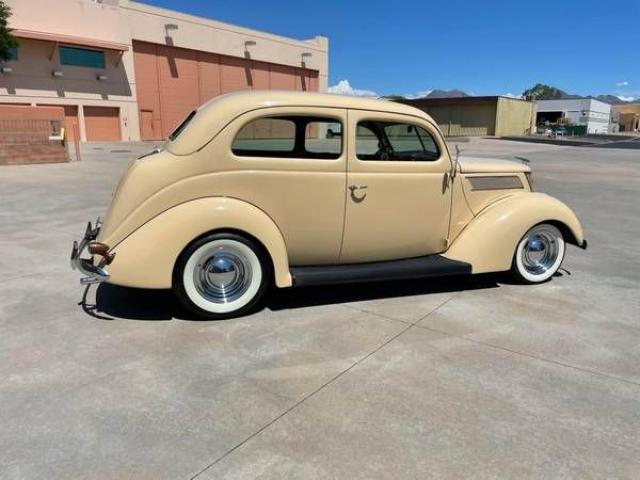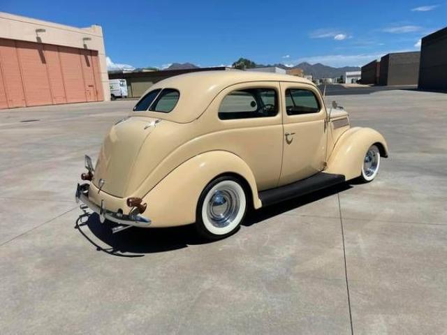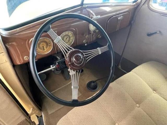1937 Ford Sedan Deluxe Humpback VIN: D2754 221ci Flathead V8 Edelbrock Heads Offenhauser Aluminum Intake Manifold Dual Stromberg 97s Carburetors Chrome air filters Chrome oil cap Chrome manifold nut covers New plug wires Complete recent tuneup and carburetor rebuilds Rebuilt factory distributor Chrome for blade cooling fan Dual chrome cooling pipes Factory 6 V electric system Chrome side hole generator cover Duel exhaust system Rebuilt T5 four-speed transmission New clutch assembly, hydraulics rollout bearing Polished clutch reservoir mounted on lower engine firewall Converted to open driveshaft, with new new u-joints Fabricated X-frame and floor area to accept new transmission Custom lower drop front axle assembly Rebuilt king pins Custom power front disc brakes Dual master cylinder with power booster mounted on frame rail Mailed front spindle arms Chrome side mirrors Factory split windshield Factory chrome windshield wipers Original Ford front cloth bench seat, rear bench seat to match Stock style floor carpet Factory banjo steering wheel Ford factory original clock ( works ) Original faired in headlights Factory rubber covered runningboards 15 x 6 chrome wheels Chrome center buttons P165Rx15 inch radial tires, with wide white walls Factory Ford rear banjo differential Heavy duty rear shocks Rear drum brakes Parallel rear leaf springs 2 inch rear lowering blocks 2 inch custom heavy duty rear shackles K 15/75RX 15 inch radio real tires, with wide white walls 15 x 6 rear chrome wheels with custom buttons Carpeted trunk Customer bumper Chrome exhaust tips Professional quality exterior paint All stainless and surrounds in like new condition 4 Speed Very well maintained and stored indoors Beautiful wheels and tires that accents the curves of this amazing car SHOWROOM CONDITION CLASSIC CAR Please Note The Following **Vehicle Location is at our clients home and Not In Cadillac, Michigan. **We do have a showroom with about 25 cars that is by appointment only **Please Call First and talk to one of our reps at 231-468-2809 EXT 1 ** FREE Consignment Visit Our Site Today Easy To List Your Vehicle and Get it Sold in Record Time.
