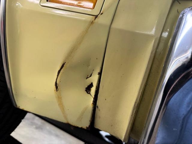Not an uncommon color in the mid 70\'s, Cream Gold adorns this classic with a contrasting tan vinyl roof that covers the entire roof, an option typically reserved for the Brougham. 1976 represents a redesign for the Cutlass, taking the singular round headlights and applying square dual headlights that bookend a two part grille that boasts the interesting design element of folding to top the nose next to the hood ornament. The Colonnade fixed window in back cants forward and the rear decklid takes on the same angle is an intentional design, capped by flush vertical tail lights with the familiar Olds jet logo. Tan pinstripes define the top lines of the car and 15-inch Oldsmobile Super Stock II wheels complete the original look, here wrapped in white walled 215/75R15\'s with a late 2020 date code. Imperfections include scratches on the front fender, some residue on the fender where molding may have been, surface rust at the base, chips and bubbling low on the door, more surface rust on the rear quarter panels and fender, and the gravel guard separating from the body along with more peppering of bubbles on both rear fenders, chips to the black plastic bumper guard, a dent with surface rust on the fender where it meets the nose, flaking rust inside a wheel arch, and various other chips.
