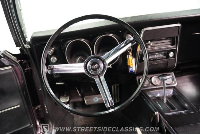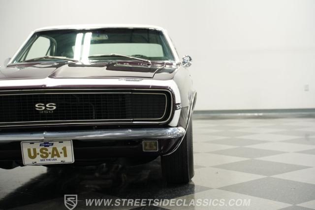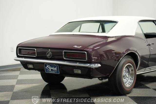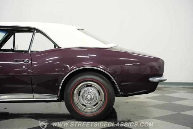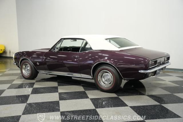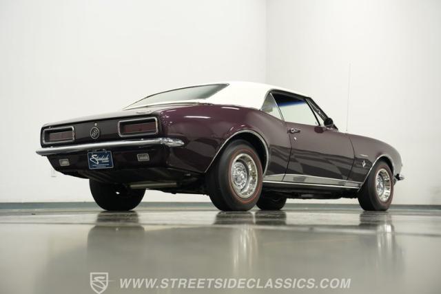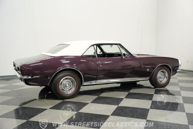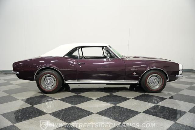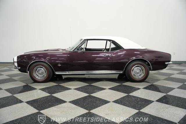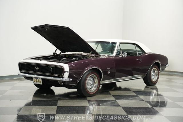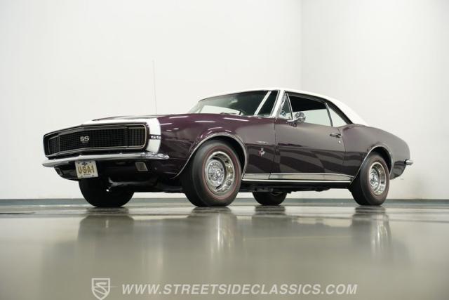 Not all that many classic Camaros rolled off the assembly line bearing the dual distinctions worn by this 1967 Chevrolet Camaro RS/SS 350, and most of them have long since fallen by the wayside. And, not only does this vintage Chevy combine the hidden headlights, a special front grille, and other appearance upgrades with enhanced power and a more action-oriented suspension that come via its elevated status, but it also features a level of factory-correctness that\'s truly hard to come by. As if this didn\'t set it apart enough, its Royal Plum paint represents an original Chevy color offering that was only available the year it rolled out, so this is one singular ride we have right here. It arrives at the present looking thoroughly refreshed, with its paint holding a deep shine, accented by razor-sharp accent stripes and vibrant bright work, with a contrasting white vinyl top that\'s in matching condition.