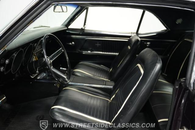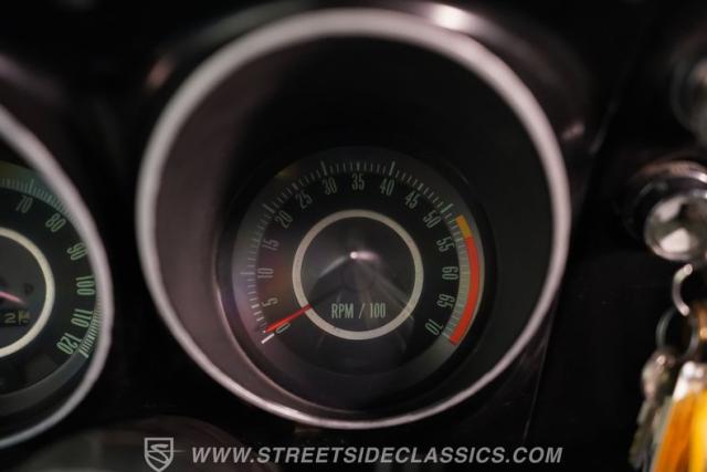 The interior has undergone a full restoration while keeping its factory configuration well intact, with black, vinyl-clad front bucket seats that are in impressive shape, wearing white accenting stripes that still look as fresh as they did when the covers were first installed. The buckets straddle a very clean center console that features a T-handle shifter and the trio of gauges that came to be a coveted factory design element when this Camaro first rolled out. The overall functionality inside the doors is impressive. The instrument gauges work as intended, the interior lighting illuminates on cue, and the windows roll up and down without incident.