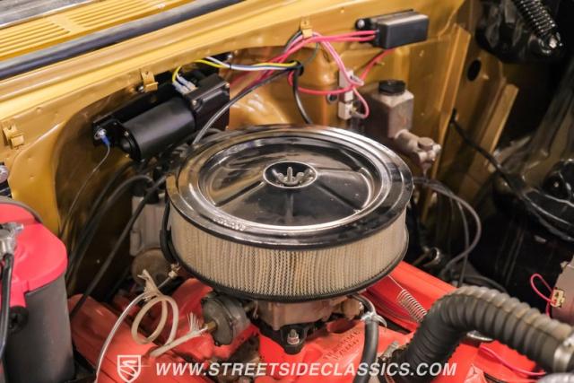 A peek beneath the hood reveals a 283 V8 engine that was rebuilt during the frame-off restoration in 2017. It\'s paired with a smooth-shifting 700R4 4-speed automatic transmission, an upgrade that makes this classic even more enjoyable to drive. The engine bay is clean and simple, with a stock-style radiator keeping things cool. Underneath, the car is just as impressive, with tubular control arms, newer coils, and shocks up front, and a solid axle with leaf springs and shocks in the rear. Power is put to the ground via a 10-bolt rear end, and drum brakes all around provide steady stopping power.