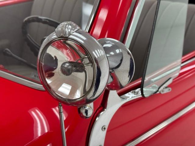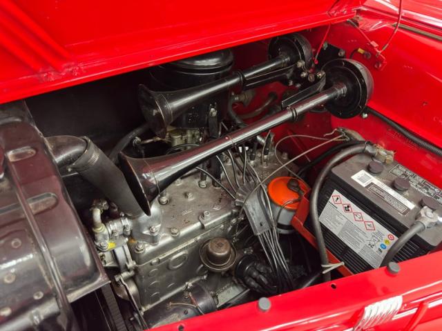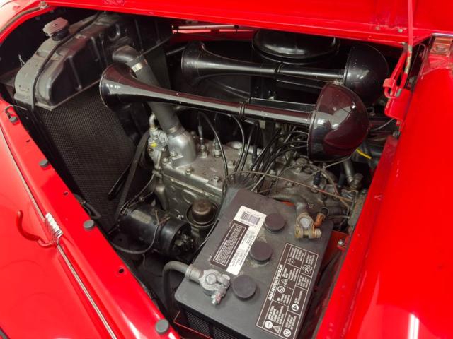 Viper Red paint adorns this car and pops like a cardinal in the snow. It\'s bright and shiny with wide fenders arching over red painted wheels, blingy beauty rings and red-accented Dodge hub caps...all wrapped in wide white wall tires. The body was brought to bare metal before painting and the prep work has paid off, most evident on that huge, rounded trunk. The brightwork is fantastic with polished stainless steel and chrome everywhere including the driver\'s spotlight. The bumper chrome is where quality really shines, and these are accented with red chevrons on the bumperettes. A black canvas top is in excellent condition and functions properly with a glass rear window. The ram ornament leaps forward and leads the charge of this pre-war beauty. One rust bubble was noted low on one door but you\'d have to look for it.