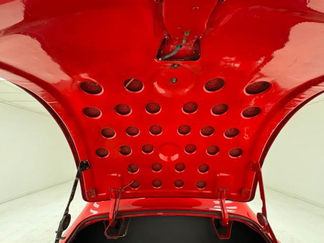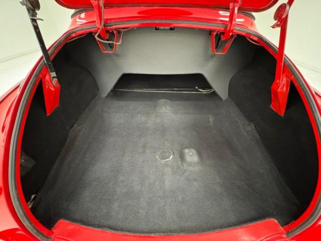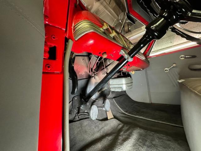 The wheels and underbody parts painted in red surround an otherwise black underside. Independent suspension and coil springs up front with leaf springs in the back. Surface rust appears on suspension components, the driveshaft, and the frame while excess bushing grease has picked up some dirt along the way. Floorpans look solid and the single exhaust looks great. Everything seems to be in order here for a car that is occasionally driven.