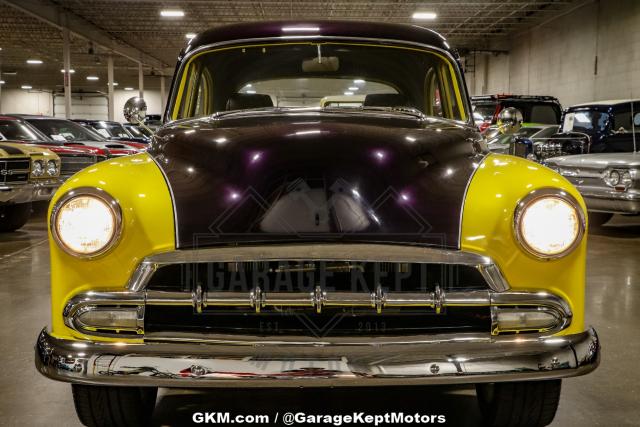 1952 Chevrolet Styleline - 350CI V8- 3 speed automatic- Power steering and brakes- Disc front brakes- Custom flame paint job- Custom exhaust with side and rear exits- Black leather interior- American Racing 5 spoke wheelsWith only 12,867 miles on the odometer, this Chevy Styleline is a rare find, offering a blend of vintage charm and modern performance. Under the hood lies a robust 350CI V8 engine, providing the power and reliability that enthusiasts crave. Paired with a smooth 3-speed automatic transmission, this vehicle promises an exhilarating driving experience, whether you\'re cruising down the highway or navigating city streets.The rear-wheel-drive (RWD) configuration ensures a classic driving feel, while the addition of power steering and brakes enhances maneuverability and safety. The front disc brakes offer superior stopping power, a crucial upgrade for a vehicle of this era, ensuring you can enjoy the ride with confidence.This Styleline is a visual masterpiece, featuring a custom flame paint job that seamlessly blends vibrant yellow with striking purple accents. The unique color combination is sure to turn heads and spark conversations wherever you go. The custom exhaust system, with both side and rear exits, not only adds to the vehicle\'s aesthetic appeal but also delivers a throaty, powerful sound that complements its performance capabilities.Step inside to find a meticulously crafted black leather interior that exudes luxury and comfort. The attention to detail is evident in every stitch, providing a plush environment for both driver and passengers. The interior\'s classic design is tastefully updated to meet modern standards, ensuring a comfortable ride without sacrificing the vehicle\'s vintage charm.Completing the look are the American Racing 5-spoke wheels, which add a touch of modern flair to this classic beauty. These wheels not only enhance the vehicle\'s appearance but also contribute to its improved handling and performance.This 1952 Chevrolet Styleline is more than just a car; it\'s a piece of automotive history with a unique personality. The custom flame paint job and dual exhaust system make it an exotic class car, setting it apart from other vintage vehicles. Its combination of classic design and modern upgrades makes it a special find for collectors and enthusiasts alike.