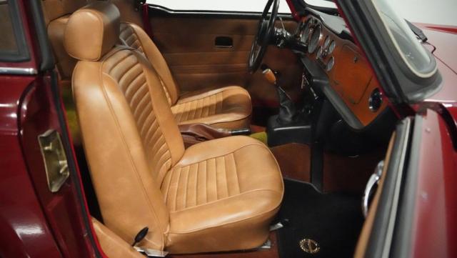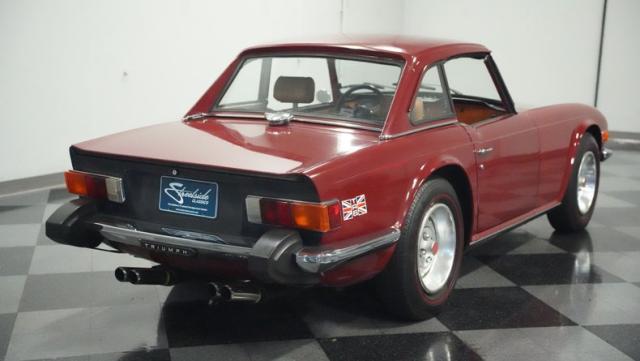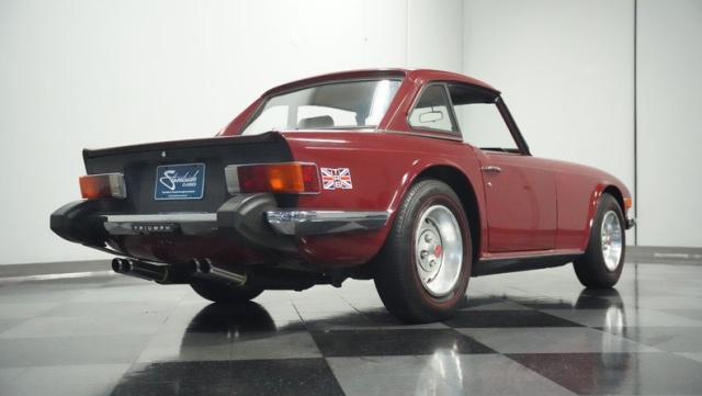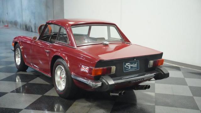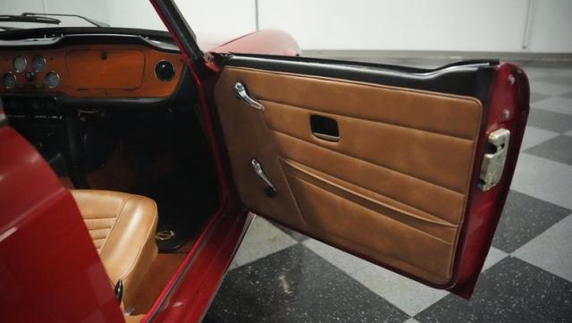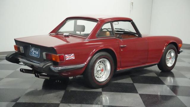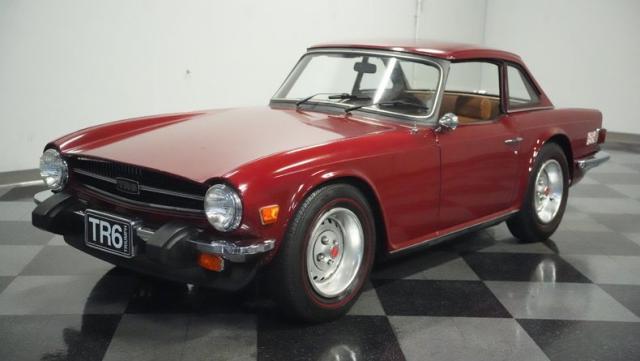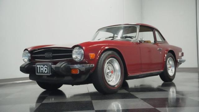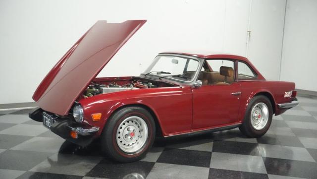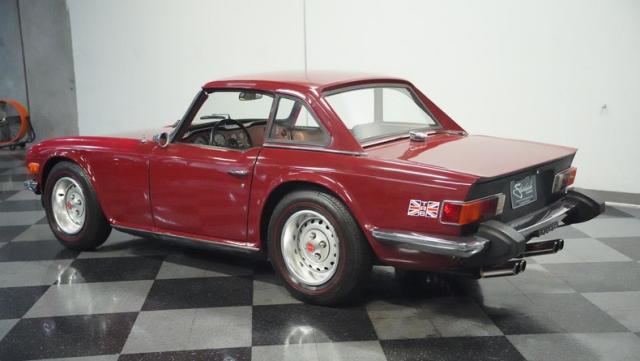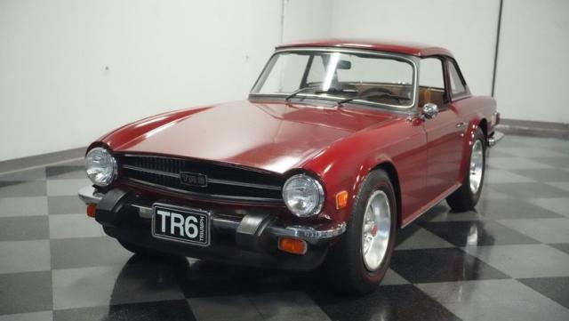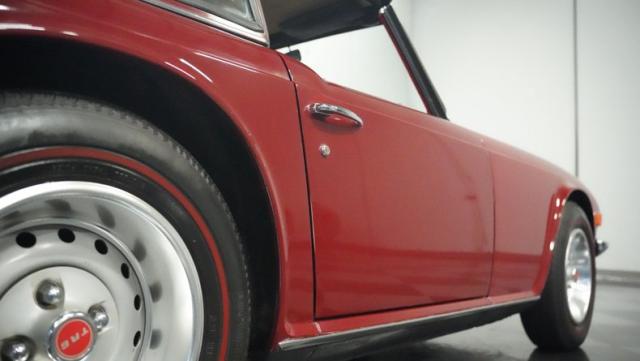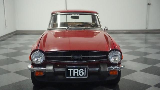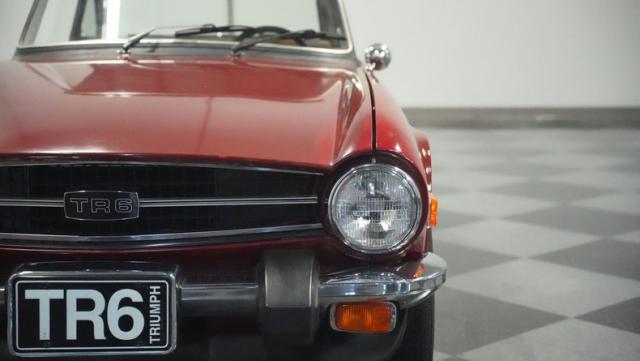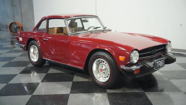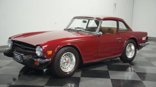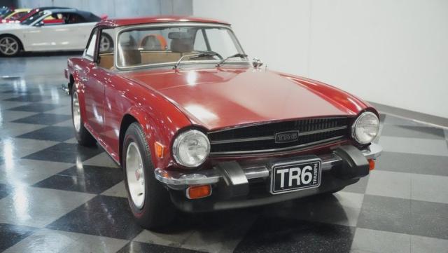 This 1976 Triumph TR6 carries documented British Motor Industry Heritage Trust certification - a mark of authenticity few others possess. The Carmine Red exterior color channels the bold racing spirit of Britain\'s finest sports cars. Its dual personality shines through with both an open-air experience and a fitted fiberglass hardtop for year-round enjoyment. The classic 15-inch wheels wear purposeful 185-15 Dunlop tires, while polished brightwork accentuates every sculpted body line. Found at Barrett-Jackson in 2011, this TR6 represents a carefully preserved piece of British motoring excellence.