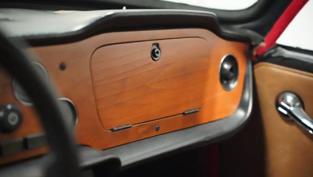 The beige vinyl cockpit delivers pure racing-inspired British design. High-bolstered bucket seats put you in perfect control, while the wood-rimmed steering wheel brings old-world craftsmanship to your fingertips. The no-nonsense dashboard houses classic Smiths gauges, and the short-throw floor shifter falls naturally to hand. The AM/FM cassette player adds modern tunes to this classic British experience.
