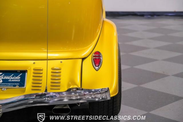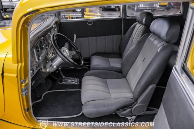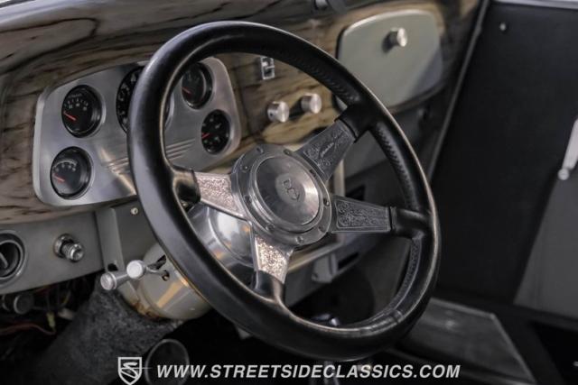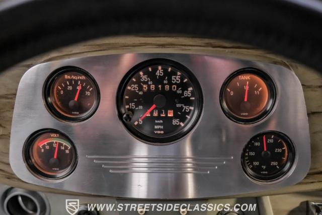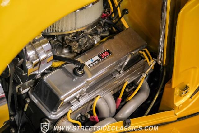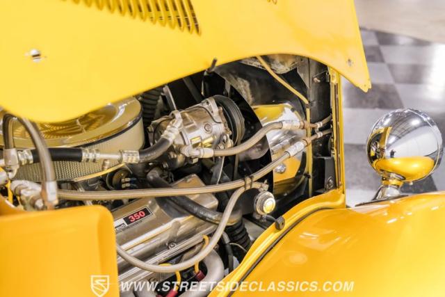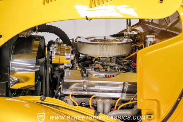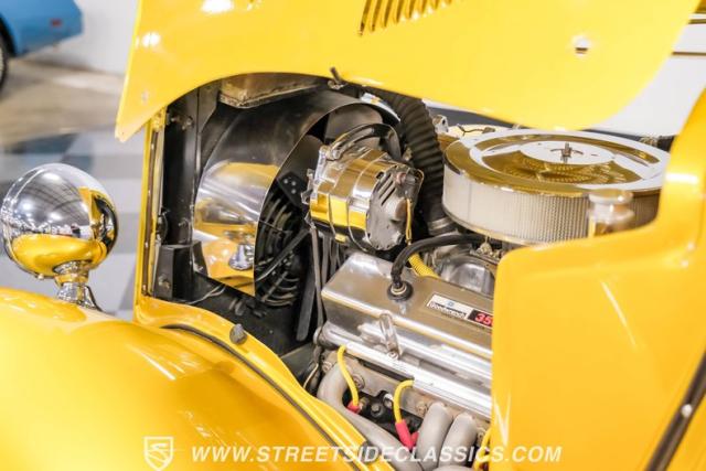 A Goodwrench 350 V8 crate engine with about 3,000 miles on it powers this streetrod. It\'s fed by an Edelbrock carburetor atop an aluminum intake, breathing through shorty headers and a dual exhaust system. A TH400 3-speed automatic transmission, recently installed, handles the power delivery. The chassis is a work of art, featuring a 1965 Jaguar front suspension with coil springs, shocks, and a sway bar. The rear boasts a 1966 Jaguar independent rear suspension with Kugel components and four coilovers. Power disc brakes, including inboard Wildwood discs in the rear, provide reliable stopping power. Manual rack and pinion steering offers precise control, enhancing the driving experience of this custom build.