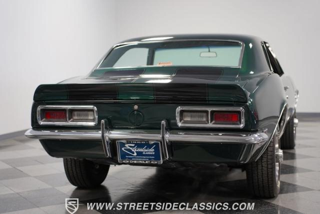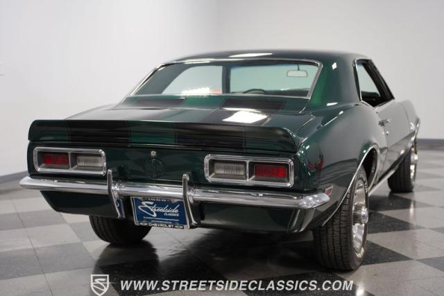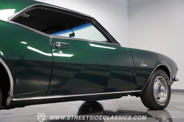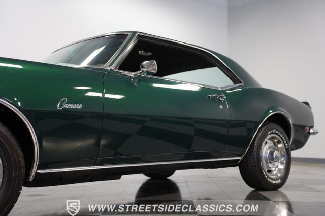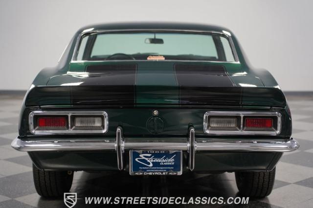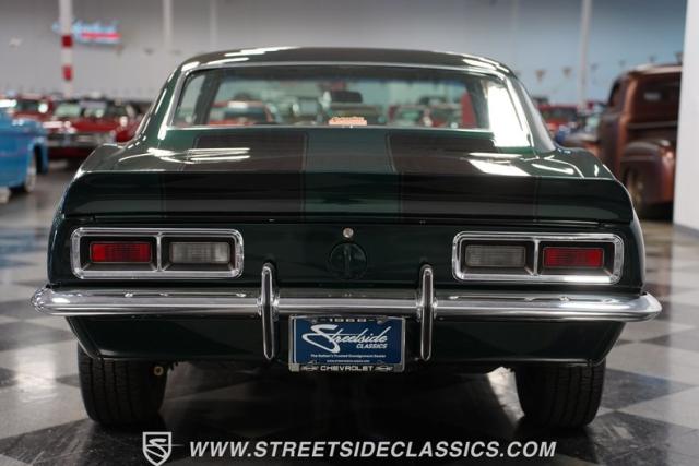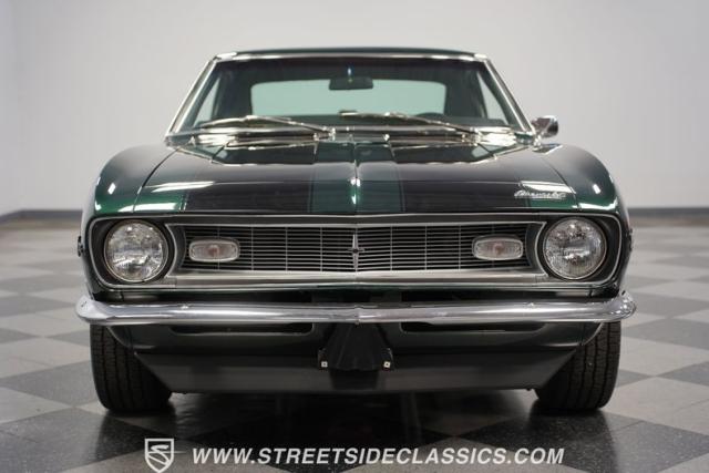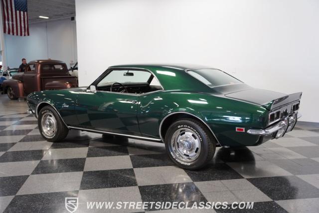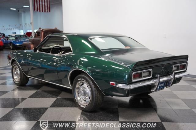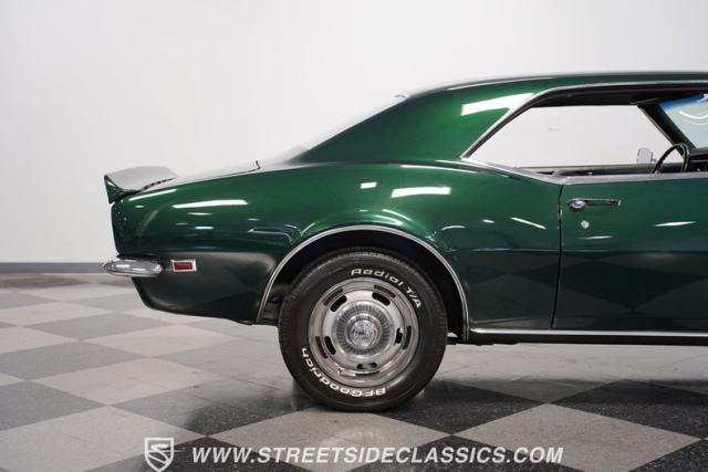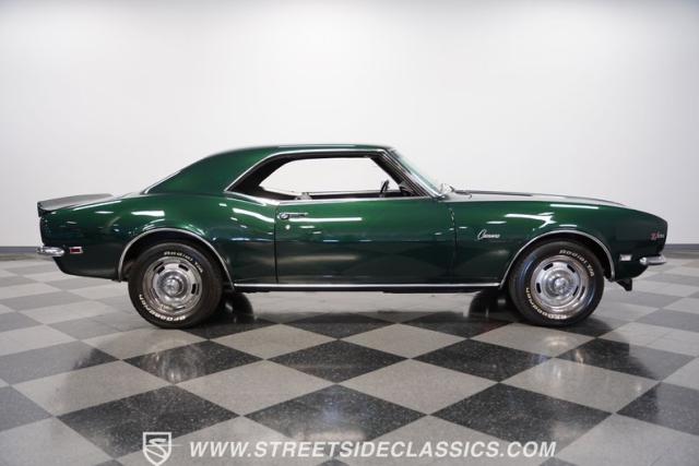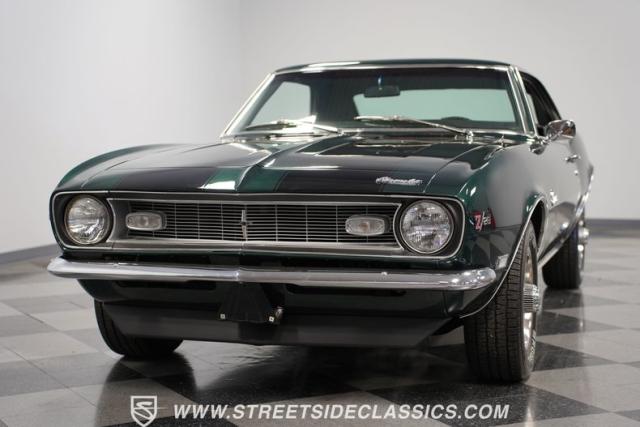 This 1968 Chevrolet Camaro Z/28 exudes a classic muscle car attitude. Its dark green metallic paint is adorned with bold black racing stripes a timeless combination announcing its performance pedigree. Though not original to this car, details like the cowl air intake, a feature unique to early Z/28s, signal this Camaro\'s dedication to speed. This Z/28 sits on the perfect set of wheels 15-inch Rallys wrapped in classic 215/65R15 BFGoodrich Radial T/As.