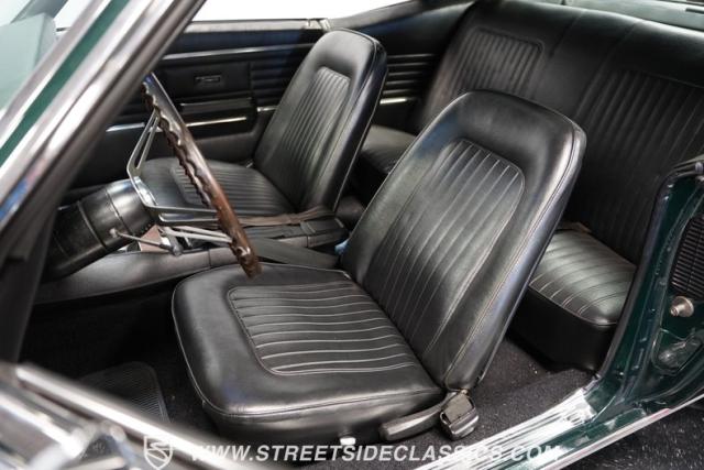 The no-nonsense interior puts performance front and center. Slip into those black vinyl bucket seats, and you\'ll find a cabin purposefully devoid of distractions like a heater or radio. With a gleaming chrome ball Hurst 4-speed shifter topping the center console, this Z/28 delivers a pure driving experience. Its auxiliary gauge package keeps you informed on the vitals, and the wooden steering wheel adds a touch of classic charm. While age has left slight marks on the dash pad, the overall condition speaks to the care this muscle car has received.