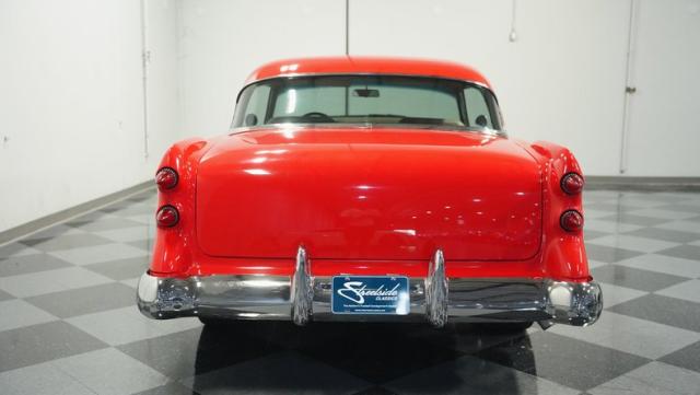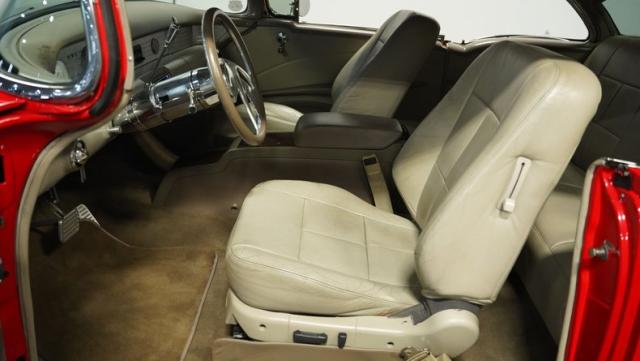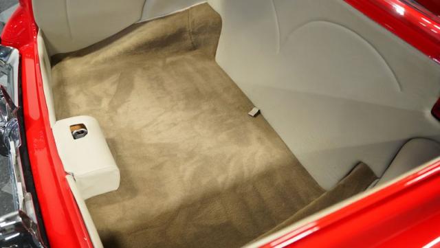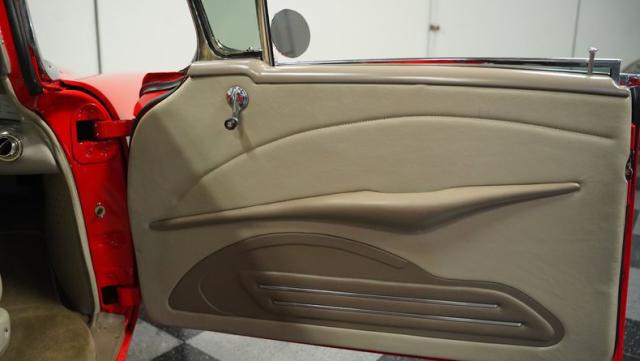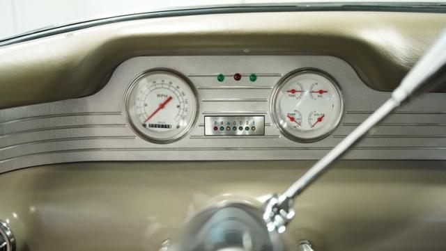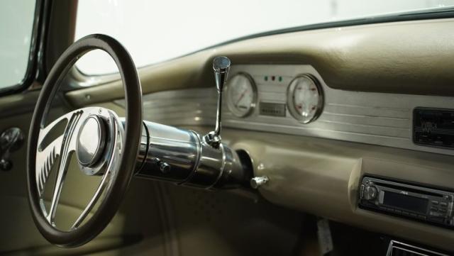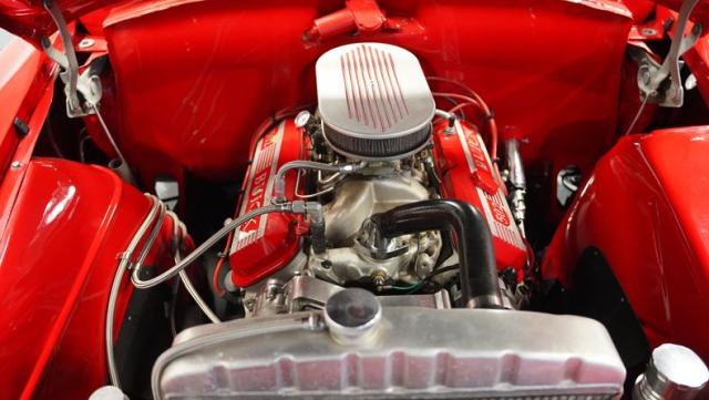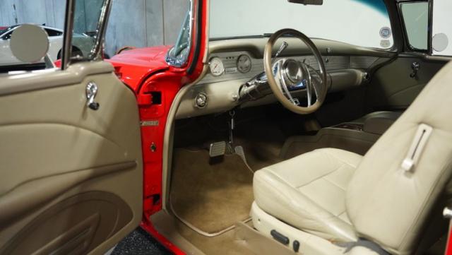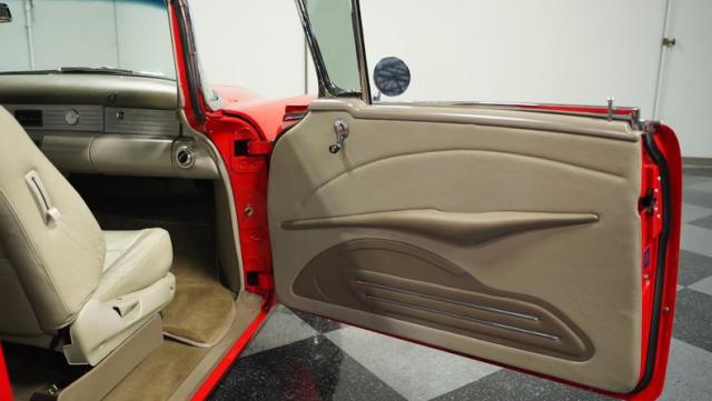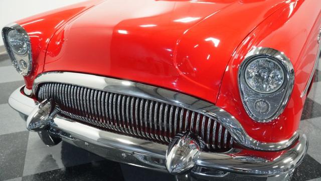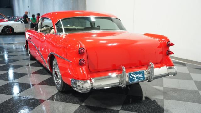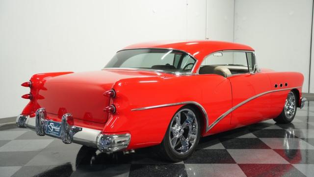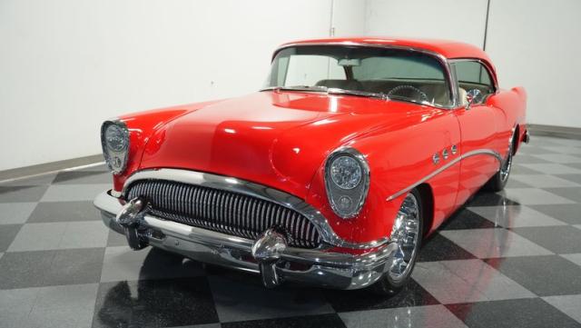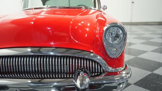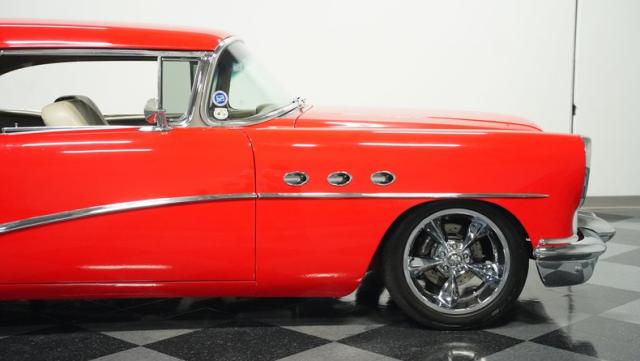 This 1954 Buick Special Riviera Restomod graced the pages of Motor Trend magazine, showcasing its exceptional build quality. The Ferrari Red paint electrifies the senses, while custom touches like emblem delete, clear headlights, and Cadillac-style bullet taillights set it apart. The Buick\'s aggressive stance comes courtesy of 18\" front and 20\" rear Boyd Coddington wheels, wrapped in 235/50ZR18 front and 285/45ZR20 rear tires.