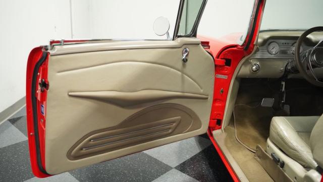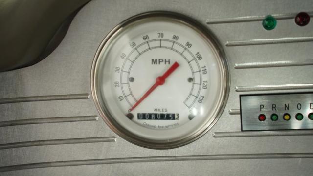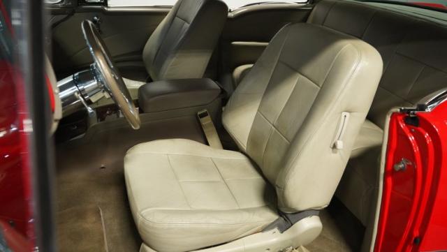 The tan leather interior is a masterpiece of craftsmanship. 99 Acura bucket seats flank a 2003 Buick Park Avenue console, all wrapped in leather by Ray Hester. Mike Warwick\'s expertise shines through the rewired dashboard, featuring custom aluminum panels and Classic Instruments gauges. Modern amenities include an Aiwa stereo and Vintage Air controls. An ididit tilt column, Billet Specialties wheel, and Juliano\'s seatbelts round out the cockpit.