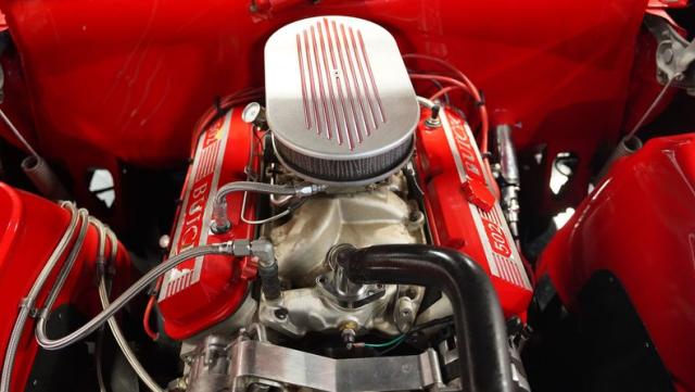 The 502 V8 crate engine dominates the engine bay. This 8.2L powerhouse breathes through a single Holley 4-barrel carburetor. A 700R4 4-speed automatic transmission handles gear changes with precision. The custom exhaust system, featuring Sanderson headers and baffled straight pipes, produces an authoritative tone. Wilwood disc brakes on all four corners provide ample stopping power.