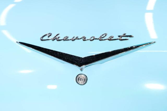 UNDERSIDE: The body was off the frame, so the underside looks fresh. All clean metal floors painted semi-gloss black. It has a lowered suspension that\'s been rebuilt. The steering has been rebuilt. The brakes have been upgraded with disc in front, the rear drums were rebuilt, and the e-brake works. It has a new dual exhaust neatly bent to run along the x-frame. New polished fuel tank. Looking up at the motor it is spotless Chevy Orange with a black flywheel cover. It has correct starter and canister type oil filter. The Powerglide automatic was upgraded with a T10 4-speed trans, the shift linkage looks fresh. The drive shaft is rebuilt.