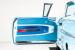 TRUNK COMPARTMENT: Under the trunk lid and the jamb are painted glossy like the car. Inside is all solid metal painted a satin blue with sound deadener and a new reproduction mat.
