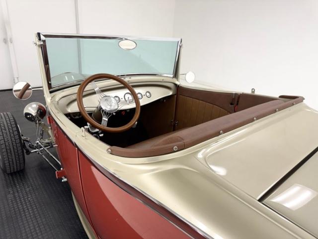For consignment, a 1930 Ford Model A roadster showing 5,345 miles, but the true miles are unknown. This two tone beauty features a Brookville body and chassis along with a saddle interior which might make you forget about the world outside.