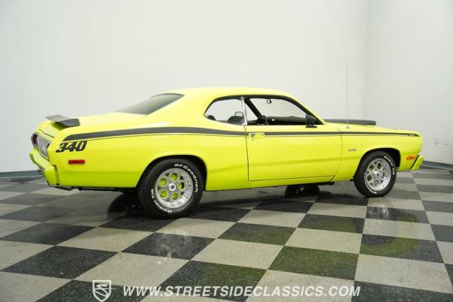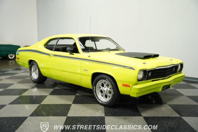 Experience the thrill and nostalgia of American muscle with this vibrant 1973 Plymouth Duster 340 Tribute. This car captures the essence of the early 70s with its bold color scheme and aggressive styling, offering a perfect blend of eye-catching aesthetics and raw power. It\'s more than just a car; it\'s a statement, a piece of history that turns heads and sparks conversations wherever it goes. Whether you\'re cruising the boulevard or showing at a classic car event, this Duster embodies a spirited lifestyle. Don\'t miss the chance to own this exciting 1973 Plymouth Duster 340 Tribute.