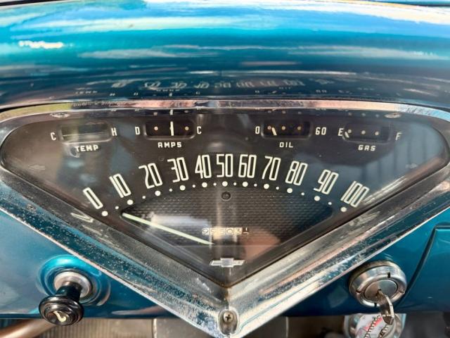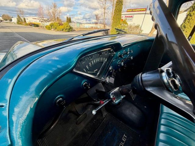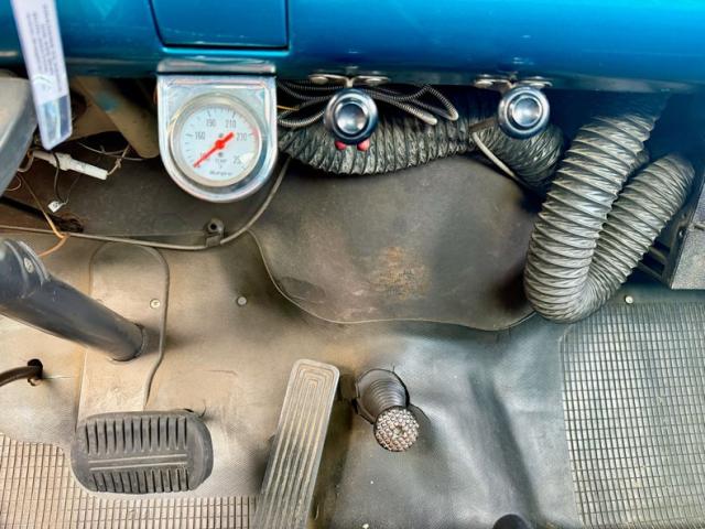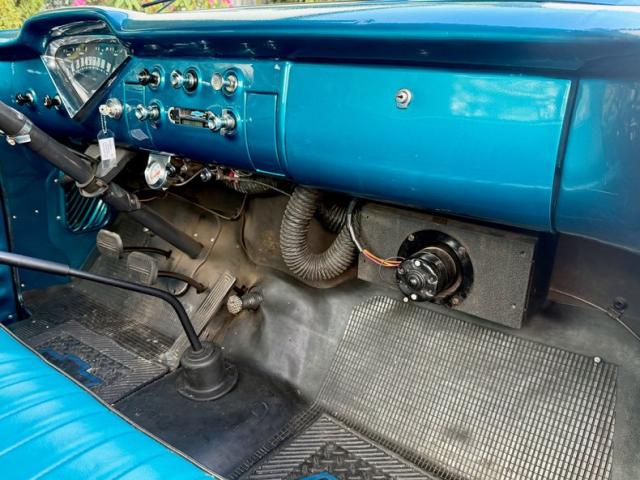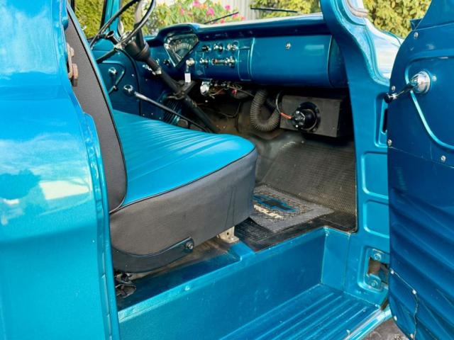 This Apache has been meticulously cared for and is in excellent running and driving condition. The engine starts easily and runs smoothly. The transmission shifts properly through all gears, and the brakes are responsive. The original speedometer is present and functioning. The original large steering wheel is also intact. The truck appears to have the original rubber floor mat. A non-original temperature gauge is installed under the dash. The factory temperature gauge is present, but the needle is missing.
