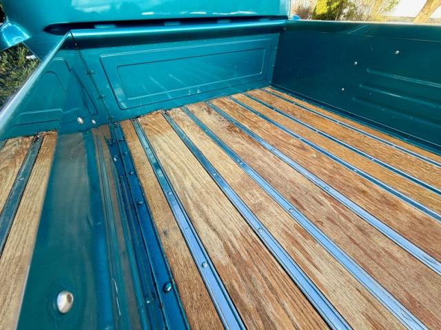 Bed: The truck bed features an Oak wood floor with chrome strips. While the wood could benefit from refinishing, it adds to the truck\'s vintage charm.