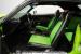 Black interior with bucket seats with bright green inserts
