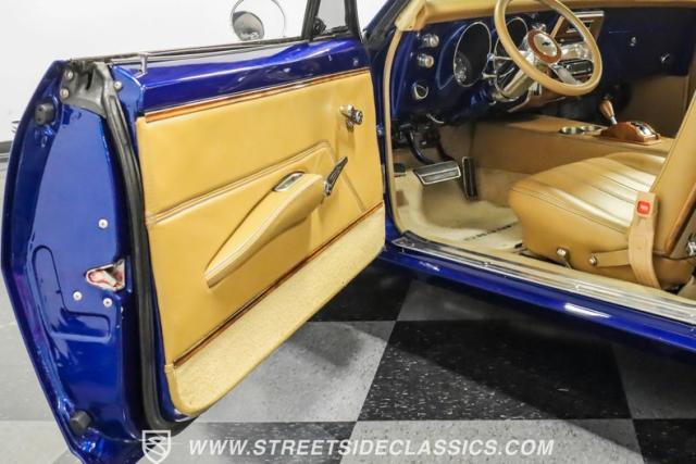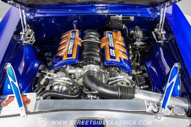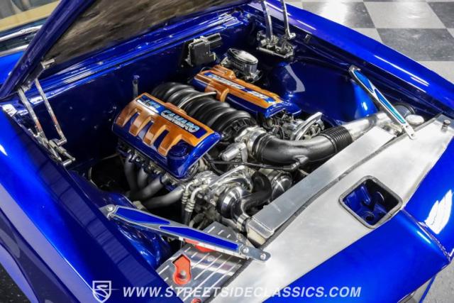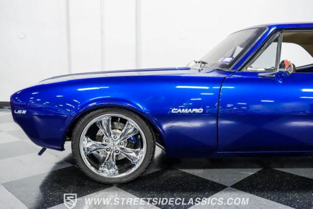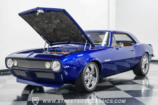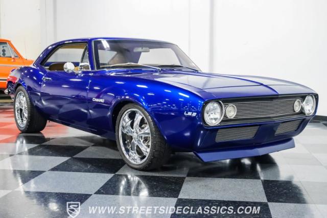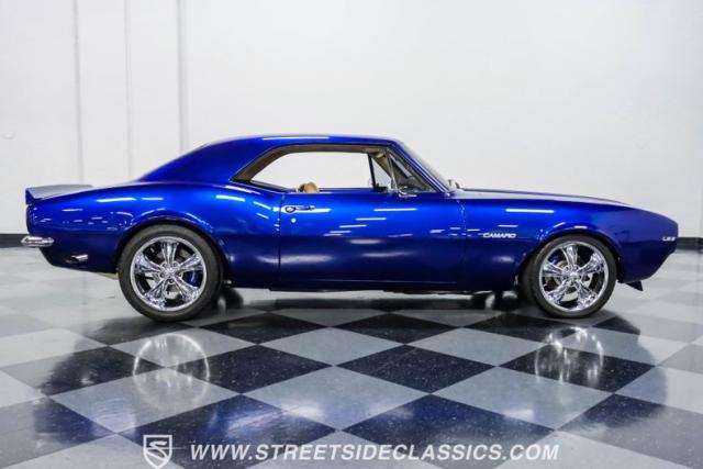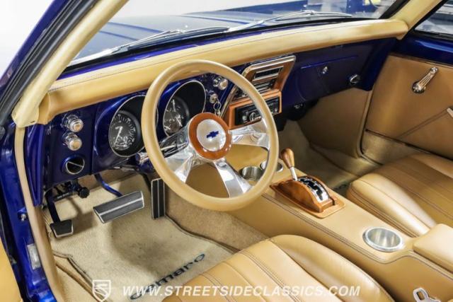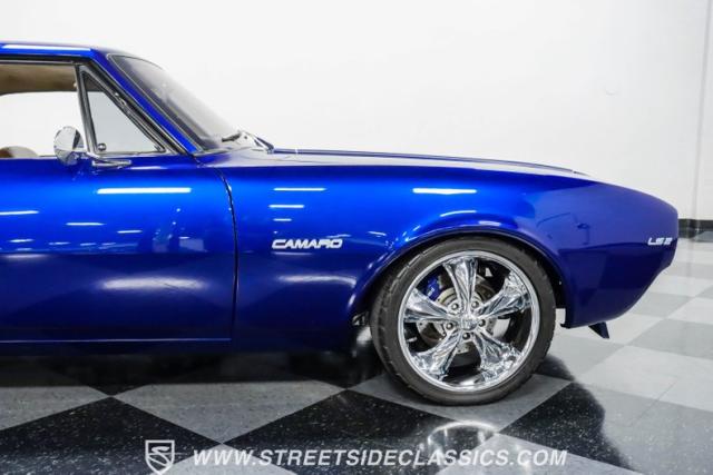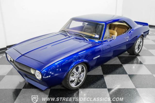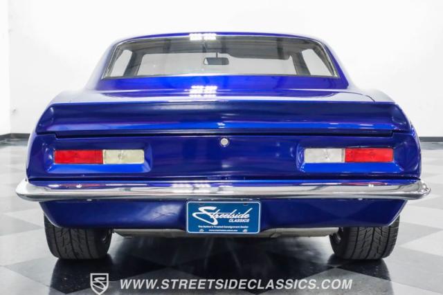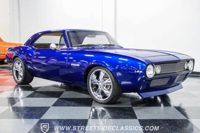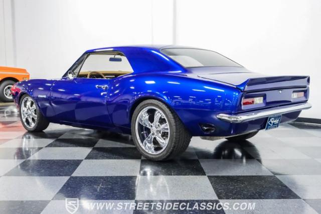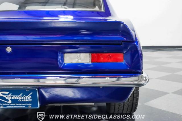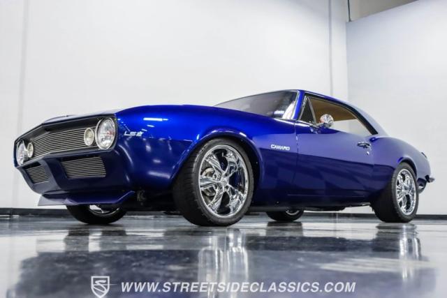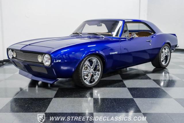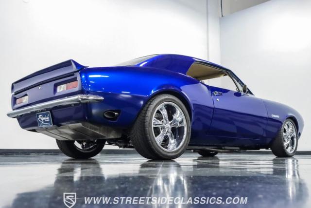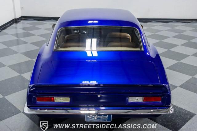 Built in California and recently dialed in by Speed Tek of Fort Worth, this 1967 Chevrolet Camaro Restomod showcases custom bodywork with shaved drip rails and very cool custom exhaust exits through the quarter panels! The sleek Indigo Blue exterior further features a billet grille, custom front clip, and rear spoiler. A set of QA1 coilovers gives it an athletic stance as it rolls on 18-inch Foose wheels wrapped in BFGoodrich rubber - 225/40ZR18 front and 275/40ZR18 in the rear.