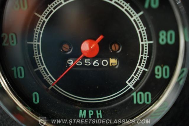 Step inside to find a beautifully redone interior that blends comfort with classic charm. The new cloth and vinyl bench seat offers both style and durability, complemented by a fresh dash pad and a light brown painted dash that retains its vintage appeal. Modern touches include a new steering wheel, an updated gauge cluster, and an AM/FM radio with a cassette player, ensuring you stay connected while enjoying the drive. The interior is clean and inviting, designed to keep you comfortable on every journey.