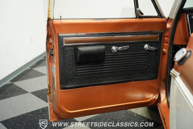 Under the hood, this truck boasts a strong-running 400 V8 engine paired with a smooth-shifting three-speed automatic transmission on the column. It features power steering and power front disc brakes, enhancing control and safety on the road. The throaty exhaust adds to the driving excitement, making every ride a memorable experience. This truck is built for cruising, with factory-style lowered suspension and 20-inch American Racing Torq Thrust wheels that combine performance with classic aesthetics.