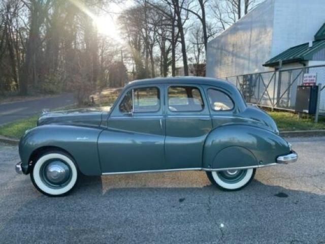 1950 AUSTIN A-70 HAMPSHIRE. YOU WON\'T EVER FIND ONE OF THESE AT YOUR LOCAL CARS AND COFFEE. AND YOU WON\'T FIND ANY CAR THERE RESTORED TO THIS LEVEL EITHER. THERE WERE ONLY 2 PRODUCED FOR THE NORTH AMERICAN MARKET AS LEFT-HAND DRIVE VEHICLES. THEY WERE ONLY BROUGHT INTO CANADA BECAUSE OF THE BIG ENGINE AS AMERICA WOULD NOT ACCEPT THEM. ONE IS SITTING IN A MUSEUM IN CALIFORNIA AND I OWN THE OTHER. THIS CAR HAS HAD AN EXTENSIVE RESTORATION AND IT WAS COMPLETED ONLY A COUPLE YEARS AGO. NO EXPENSE WAS SPARED. IT RETAINS ITS ORIGINAL 2199CC ENGINE. THIS WAS A BIG ENGINE FOR THE TIME PERIOD. THE ENGINE WAS COMPLETELY REBUILT AND WHEN I SAY IT RUNS GREAT THAT IS PROBABLY AN UNDERSTATEMENT. THERE IS NO SMOKE OUT OF THE EXHAUST AND THERE ARE NO VISIBLE SIGNS OF LEAKING. THERE ARE ALSO NO FUNNY NOISES. THE TRANSMISSION WAS UPGRADED TO A TOYOTA 5 SPEED. SO NOW IT IS A CAR THAT CAN EASILY BE DRIVEN DOWN A HIGHWAY. AT THAT TIME THE COLUMN SHIFT WAS MOVED TO THE FLOOR. AT THAT TIME A SMALL HYDRAULIC RESERVOIR WAS ADDED UNDER THE DRIVERS FLOOR. THERE WAS A SMALL ACCESS HOLE MADE IN THE FLOOR FOR EASY ACCESS. I DO HAVE MANY ADDITIONAL PICTURES FOR THIS CAR AND THIS WOULD BE ONE OF THEM. THIS CAR IS A BLAST TO DRIVE AS IT RUNS AND SHIFTS GREAT. THE BRAKES ARE HIGH AND STOP THE CAR VERY WELL. THERE ARE NO SUSPENSION ISSUES AS THERE ARE NO NOISES OR ANY SHAKING WHEN YOU GO OVER BUMPS. THE DRIVER\'S DOOR HANDLE HAS COME LOOSE SO YOU SEE IT FACING DOWN. I HAVE MADE AN APPOINTMENT WITH THE UPHOLSTERY SHOP TO TAKE OFF THE DOOR PANEL SO IT CAN BE RESCREWED IN. IT WILL BE FIXED BEFORE THE CAR IS SOLD. THE WHEELS WERE PAINTED TO MATCH THE REST OF THE CAR AND THEY LOOK GREAT. THE TIRES ARE LIKE NEW AS THEY DO NOT HAVE ANY DRY ROT OR CRACKING AT ALL. THE EXTERIOR IS NOTHING SHORT OF AMAZING. THE CAR WAS DISASSEMBLED COMPLETELY AND EACH PANEL WAS STRIPPED. ALL THE GLASS AND RUBBERS WERE TAKEN OFF AS WELL.THERE IS NOT A DROP OF BODY FILLER AND THERE IS NOT A RIPPLE IN THE CAR.