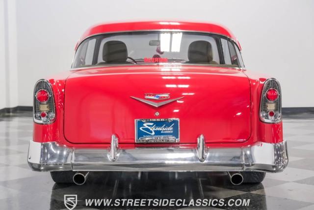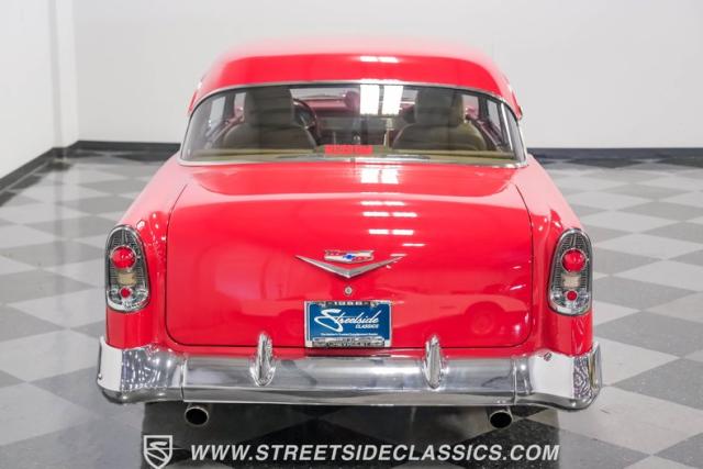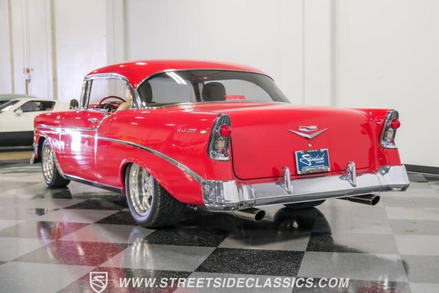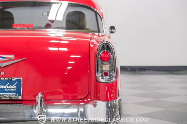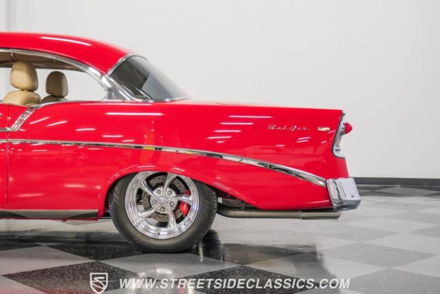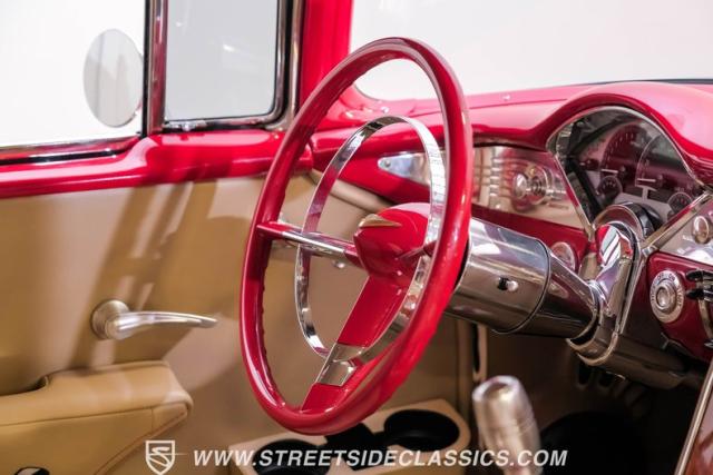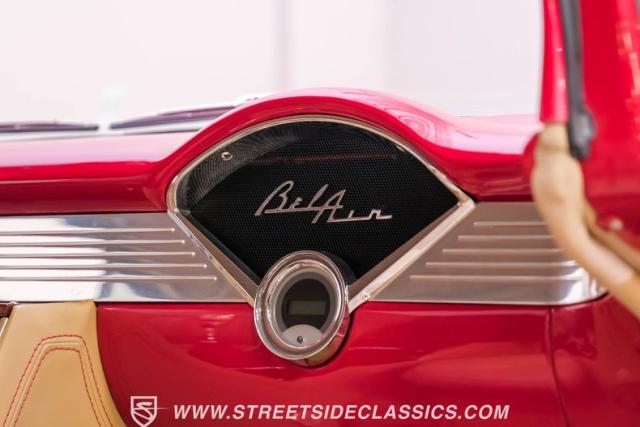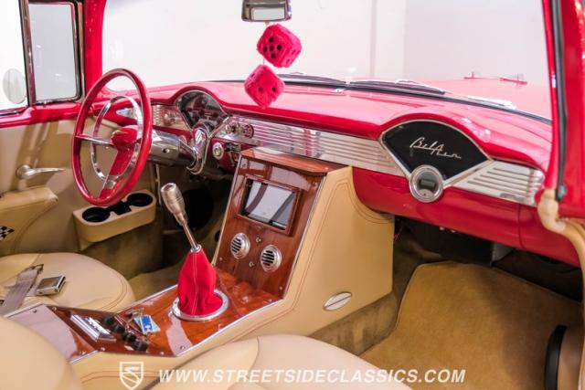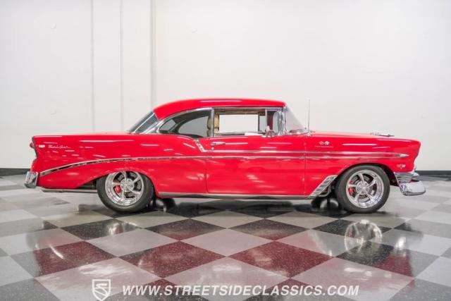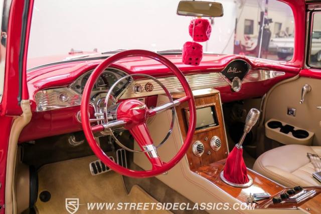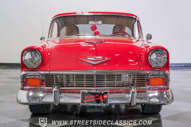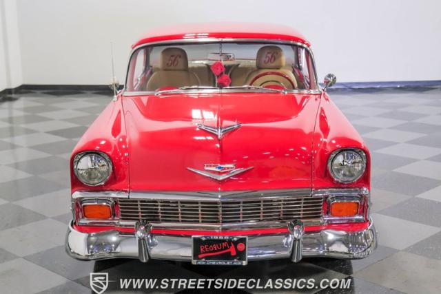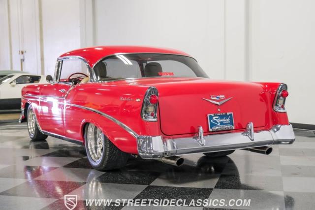 The 1956 Chevrolet Bel Air hardtop restomod is already desire on wheels, but one look at this one, and you can tell it has even more to offer. There\'s amazing paint, glittering chrome, a full custom luxury interior, air conditioning, an overdrive transmission, four-wheel disc brakes, serious fuel-injected V8 power, and much more. It\'s been built for the true enthusiast who loves to drive everywhere and win trophies on arrival.