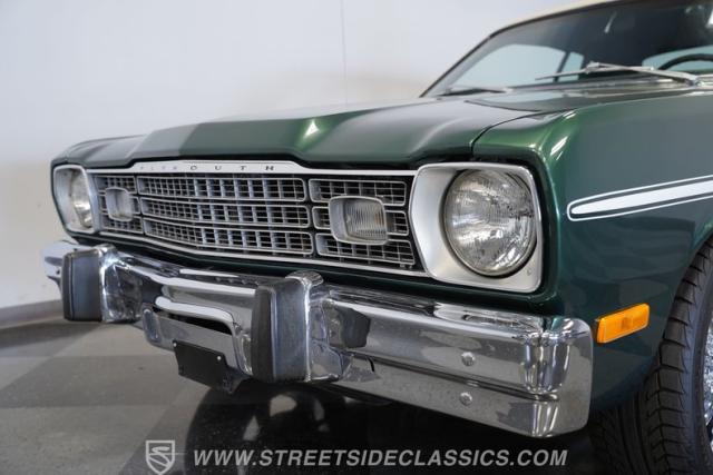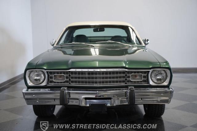 This 1974 Plymouth Duster Gold Duster combines classic Mopar style, tasteful upgrades, and ready-to-enjoy performance, making it a standout choice for collectors and enthusiasts alike. Don\'t miss your chance to own a true piece of automotive history. Call, email, or come visit our showroom today!