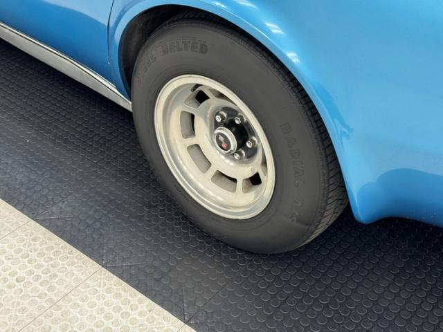 A lift forward of the scooped hood, and we see a numbers matching 350ci V8 in L48 form. It has a 4-barrel carburetor feeding it and a numbers matching TH350 3-speed automatic transmission on back. A 3.08 Positraction rear axle is spinning the rear tires. All original...a real breath of fresh air.