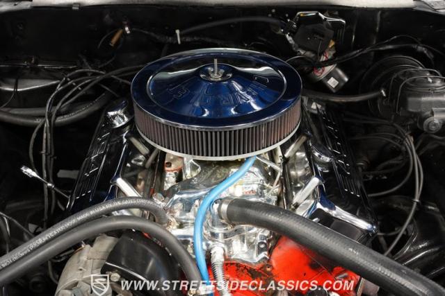 A mighty 454 cubic inch V8 delivers impressive performance through a freshly rebuilt TH350 3-speed automatic transmission. The engine bay showcases an Edelbrock Performer intake manifold with a Holley 4-barrel carburetor. Long tube headers feed into the chambered dual exhaust for an authoritative sound. Power front disc brakes provide strong stopping ability. The suspension utilizes control arms with coil springs and an upgraded four-link rear setup with shocks.