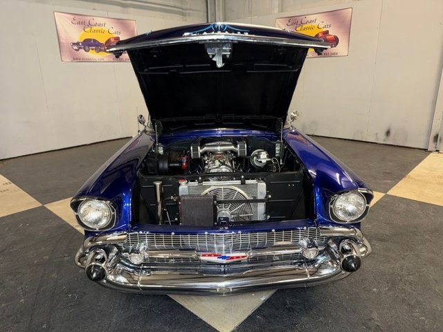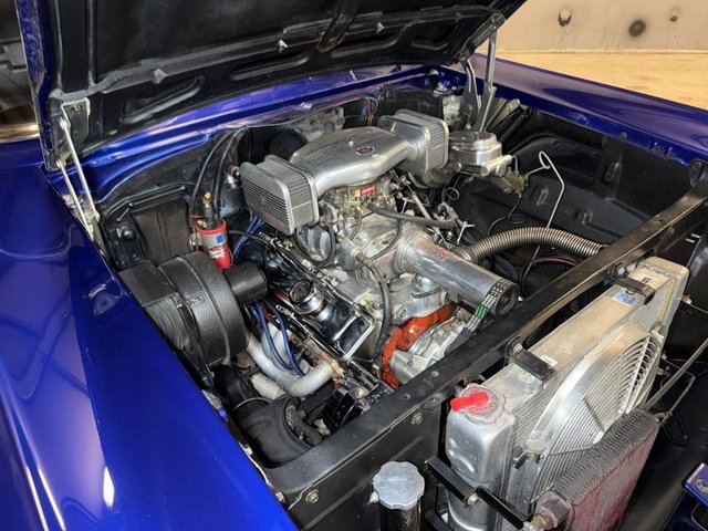 Powered by a 350-engine mated to a 350 Automatic transmission, blower intake, 471 B&M street blower with Edelbrock 4-barrel carb, Holley Hi-Teck air cleaner, headers, aluminum water neck, Coolflex hose upper and lower. Griffin aluminum radiator, chrome electric fan enclosed, Billet overflow tank, chrome alternator, chrome power steering pump, chrome timing chain cover, Billet pulleys, flex fan, chrome valve covers, chrome oil dipstick, chrome transmission dipstick, hood hinges, mini power brake booster and chrome master cylinder. Dual exhaust. Runs and handles good. Visit our website at www.ecoastcc.com for more info.