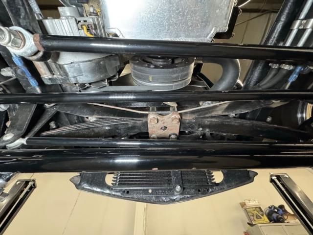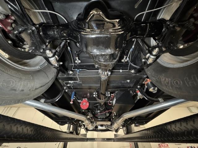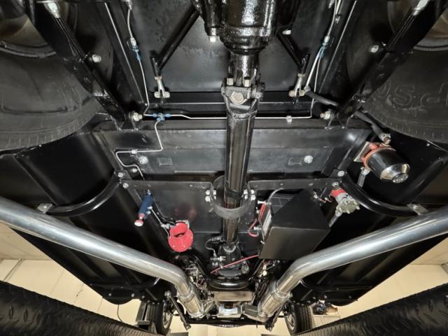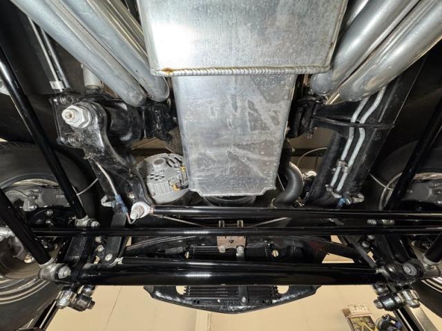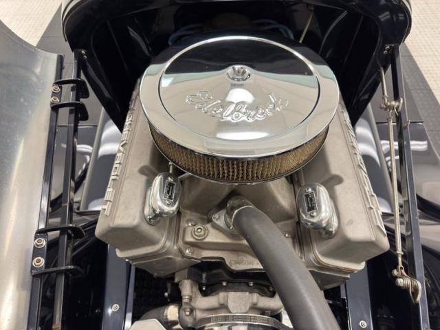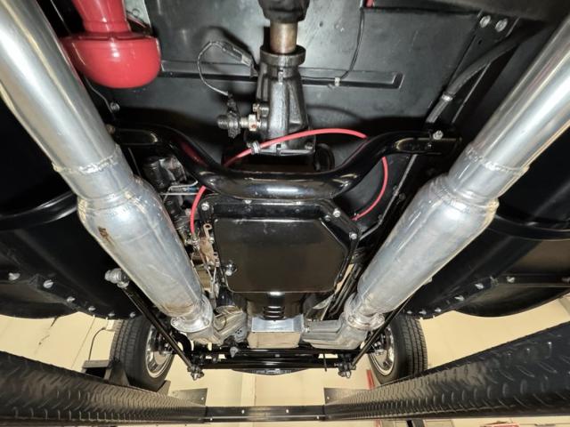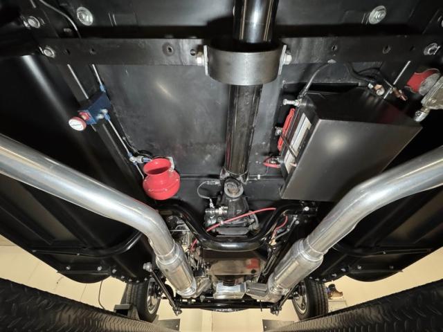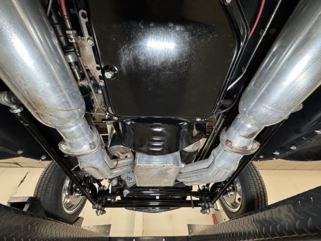 That fuel heads to the exposed 350ci ZZ1 V8 with aluminum heads, a Holley 4-barrel carburetor, GM aluminum intake, and coated headers, all ingredients of a recipe that develops 300 horsepower. It\'s mated to a TCI TH350 3-speed automatic transmission that sends power to the Ford 9\" rear with 4.11 gears with Positraction. As an engine visible to the world, it\'s appropriately clean and showy! The car operates on a 12 volt system.