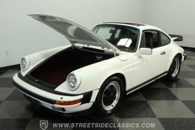 Under the rear decklid beats a legendary 3.2L fuel-injected flat six engine, paired with a precise 5-speed manual transmission. The engine bay is exceptionally clean and retains a factory-correct appearance, with all hoses and belts appearing in top condition. Power is delivered smoothly and the transmission shifts confidently through all five gears, promising a truly engaging driving experience. Power disc brakes, power steering, and factory suspension all work together to deliver the poised and agile handling Porsche is famous for.