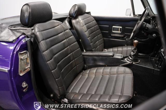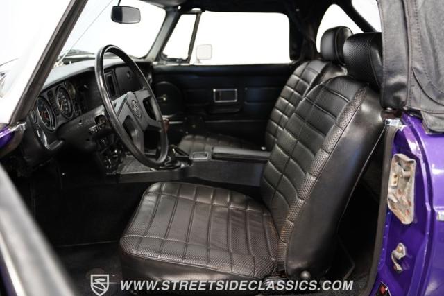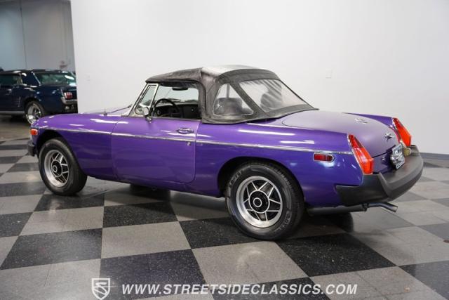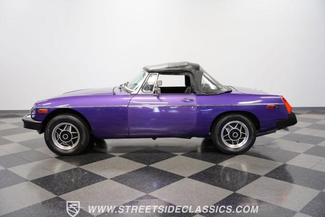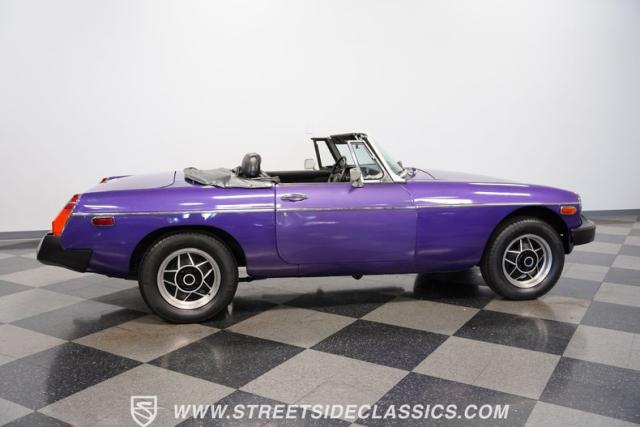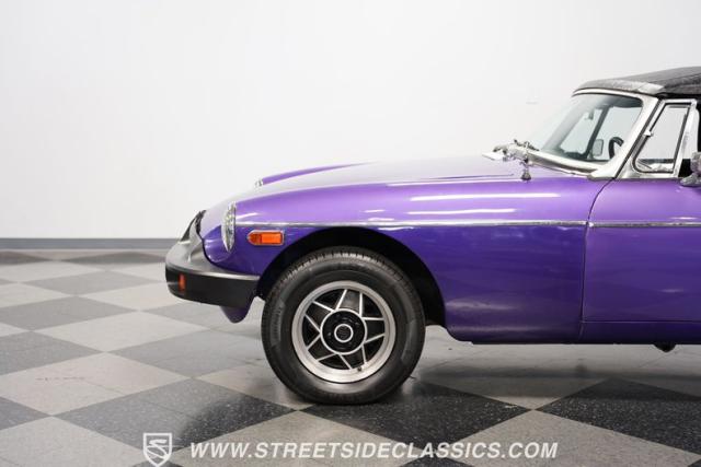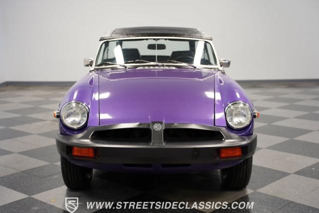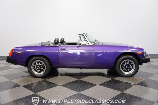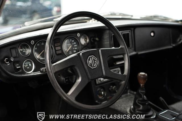 The MGB always has a place in our enthusiast\'s hearts. It\'s a worthy part of a beautiful tradition where you have a convertible built with driving fun as the top priority. And it\'s more than just the color that makes this 1977 MG MGB unique. We always like these for the way a clean black roof looks good against the black bumpers. And on this one, the wheels not only coordinate with the darkness, but they are also borrowed from another British legend, the Triumph Stag. And as you discover everything from the clean interior to the exceptionally strong-running nature, you can see this MGB is a nice value for real drivers.