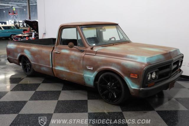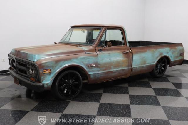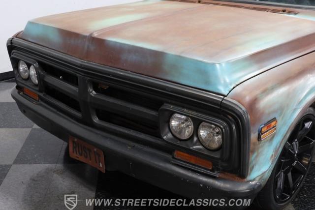 You\'d have a hard time finding a truck from any era that effectively combines the sensibilities of this 1970 GMC 1500 Patina Restomod. The natural patina derived from years of service is proudly displayed over its exterior, serving notice that this venerable pickup has seen a lot in its considerable lifetime and is all the better for it. By contrast, an aggressive lowered stance and a set of attention-grabbing 20\" KMC wheels add a definite aftermarket sensibility. Add to that a frame that\'s been properly prepped for a premium aftermarket suspension, with the dual air compressors already in place, and you have one seriously distinctive ride, a ride you\'re unlikely to come across anytime soon on the road.