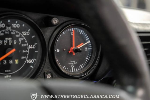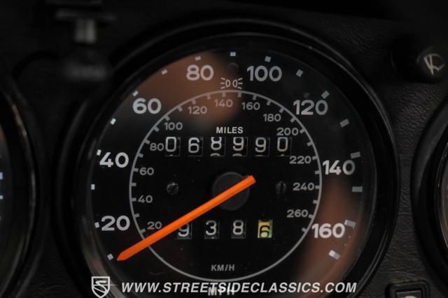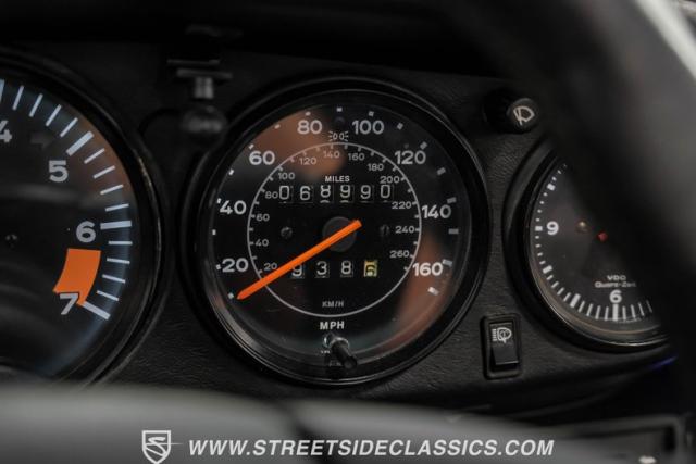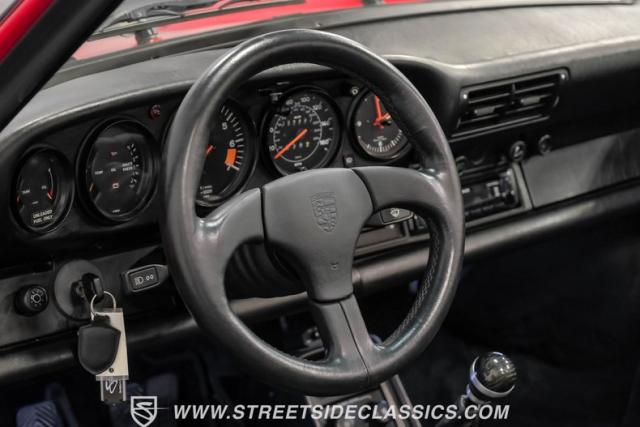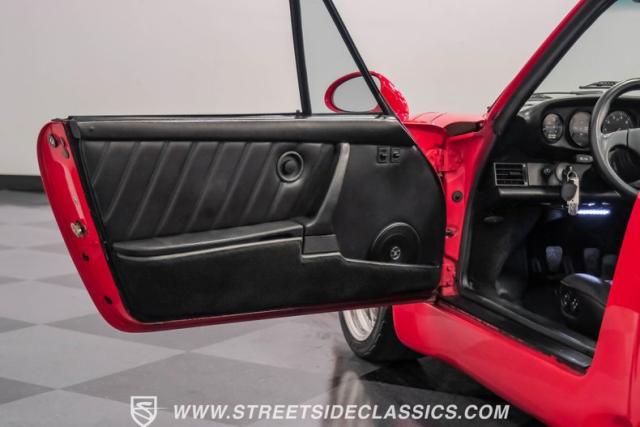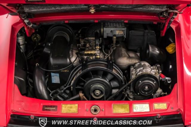 Inside, we find a classic 911 interior in all black, perfectly contrasting the bright red repainted exterior. Five big analog gauges sit front and center of the driver\'s seat, which all may be in their original condition aside from the upgraded Kenwood Bluetooth stereo (complete with amp and mini sub under the passenger seat), which is a welcomed upgrade to allow you to better listen to whatever soundtrack feels best with the wind whipping through your hair cruising down the interstate.
